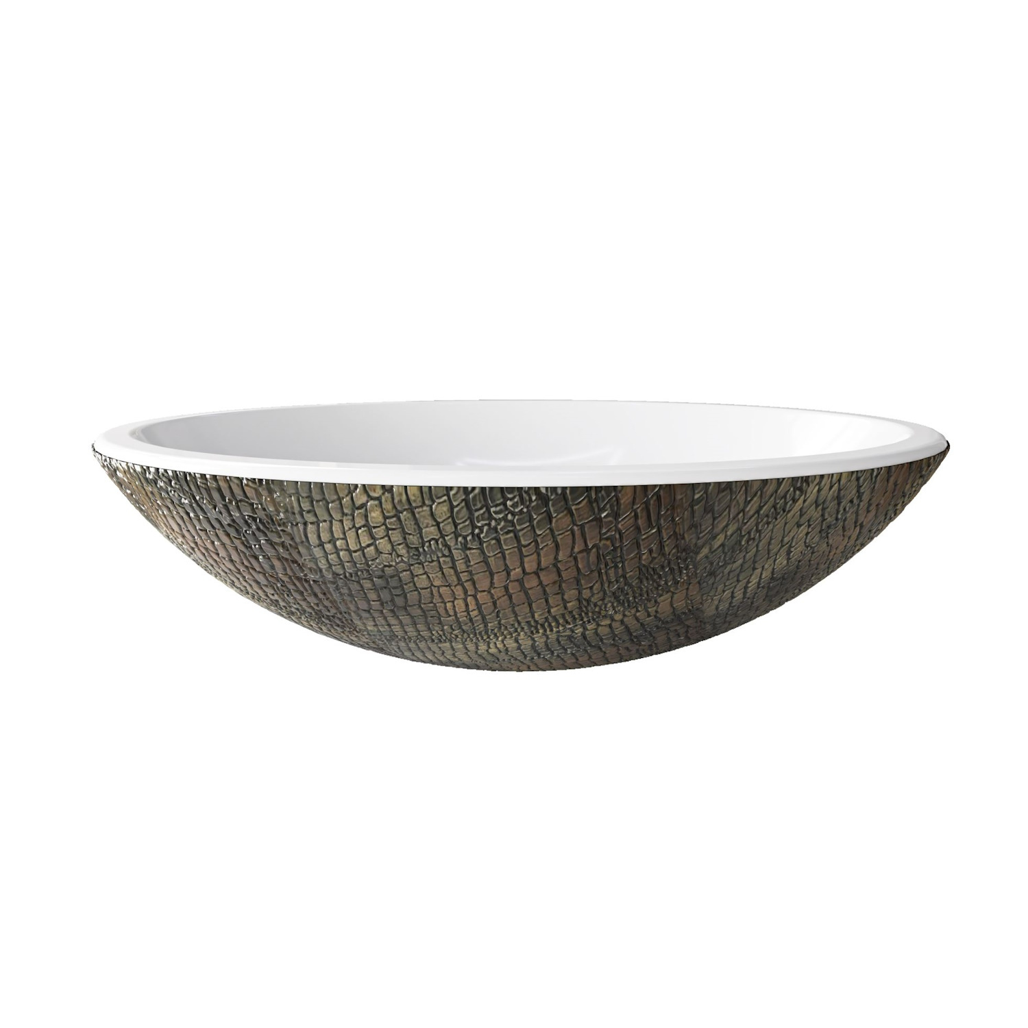 Deze prachtige waskom is van het merk Best Design. Hij komt uit de serie Color en heeft de prachtige kleur Croco Sinka (Bruin). De waskom heeft een breedte van 52 cm met een diepte van 38 cm. Hierdoor krijgt hij een ovale vorm. De hoogte van de waskom bedraagt 14.5 cm. De kom is gemaakt van het materiaal Acryl met een witte kleur. De buitenkant van de waskom is bruine krokodillook. Hij wordt op een topplaat geplaatst en is prachtig te combineren.