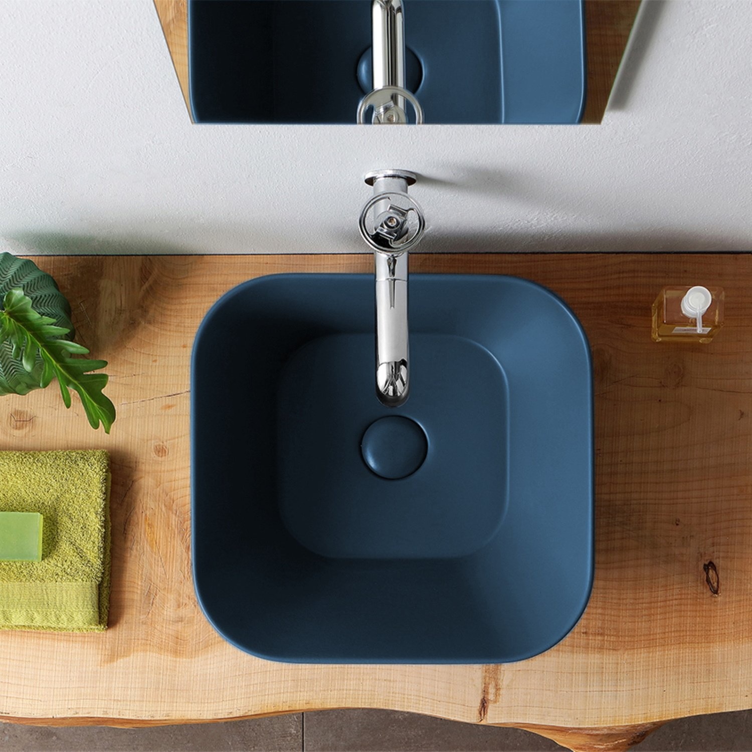 Deze Mees Design opbouw waskom geeft met zijn fraaie mat blauwe uitstraling en unieke vorm een prachtige dimensie aan uw badkamer. Zeker als u de waskom combineert met andere mat blauwe items in uw badkamer. De waskom kent een breedte van 42 cm, diepte van 42 cm en heeft een hoogte van 16.5 cm.