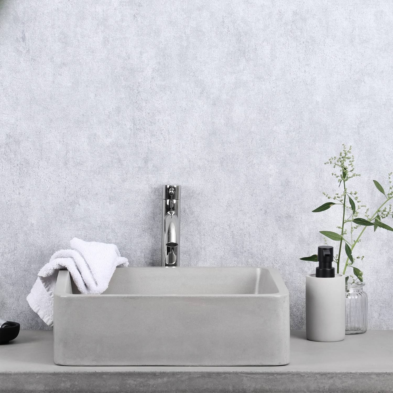 De vierkante waskom van het merk Differnz heeft met zijn hoge wanden en betonnen materiaal een stoer en robuuste uitstraling. De waskom past perfect in een stoere en industriële badkamer, zeker in combinatie met een mat zwarte kraan en sifon. Daarnaast zorgen de hoge randen ervoor dat u minder water zult spetteren op uw wastafel. De waskom is 12 cm hoog, 40 cm breed en 40 cm diep.