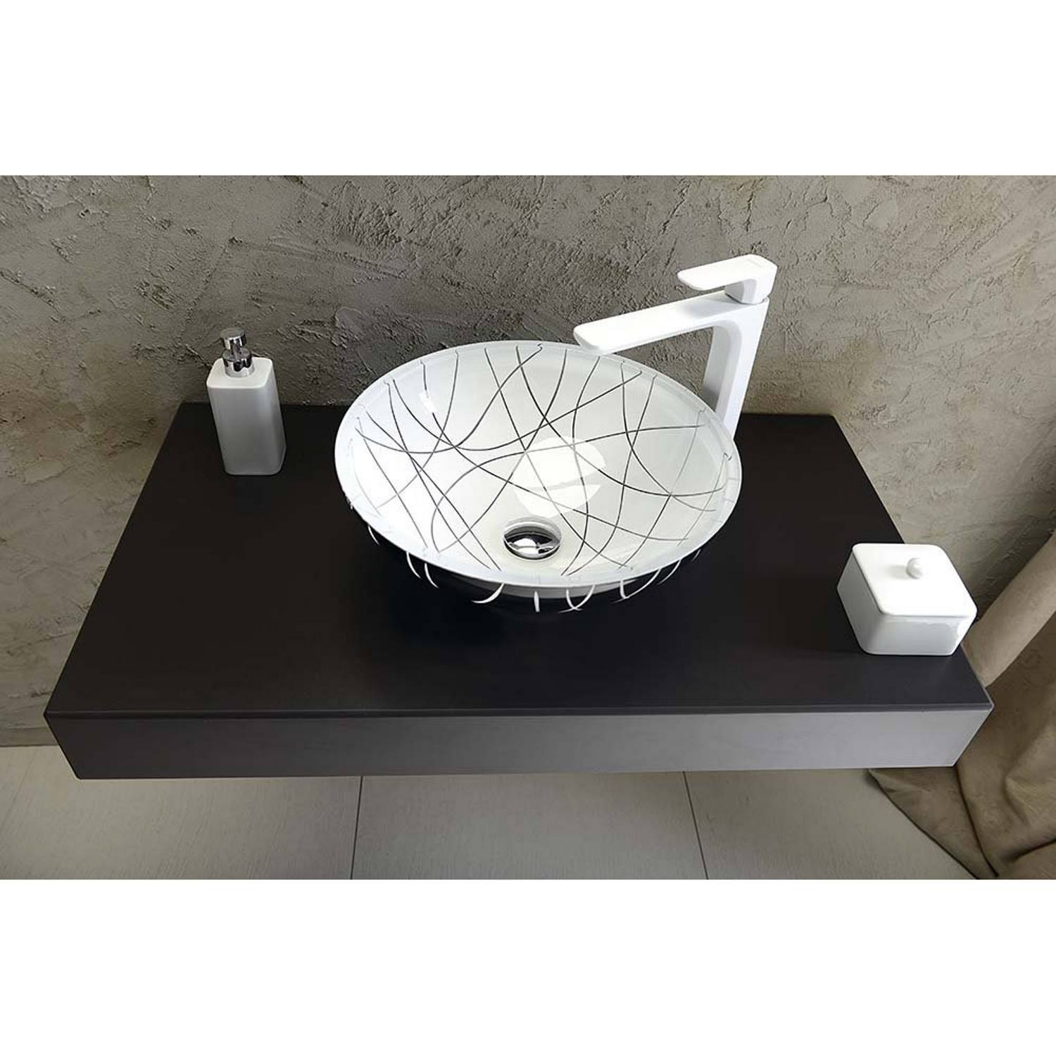 De ronde waskom van het merk Sapho heeft een unieke uitstraling. Door het gebruik van verschillende kleuren en speelse ontwerpen is de kom overal mee te combineren zodat u uw droombadkamer kan creëren! De ronde waskom is gemaakt van glas, een uitstekend materiaal voor in de badkamer door zijn duurzaamheid en glanzende afwerking. De binnenkant van de waskom heeft een wit patroon, de buitenkant heeft hetzelfde patroon alleen dan in de kleur zwart.