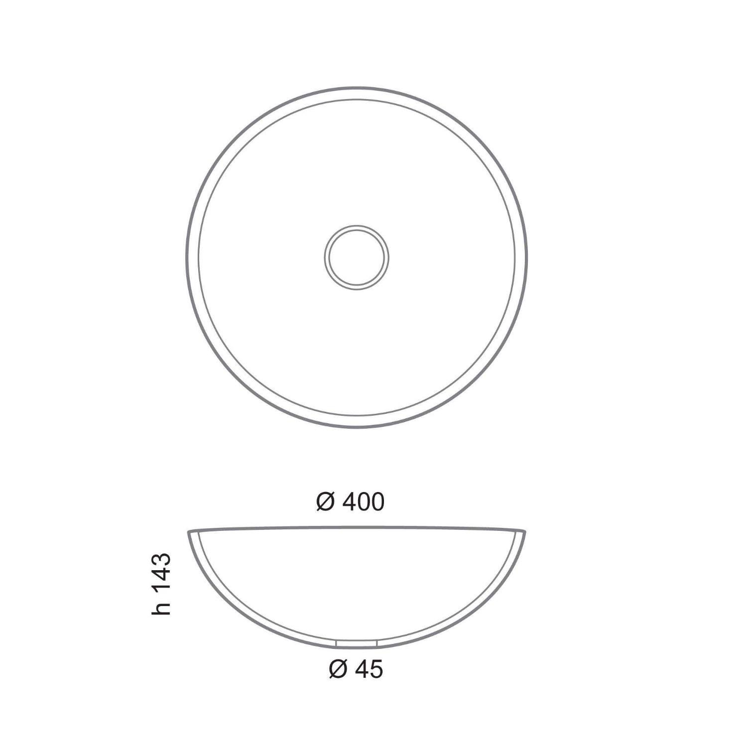 Met een hoogte van 14 cm kunt u gebruik maken van hoge wastafelkraan of een inbouw wastafelkraan, een geschikt model vindt je onder de toebehoren. De waskom heeft een diameter van 40 cm. Er is geen overloop ingebouwd in deze waskom.