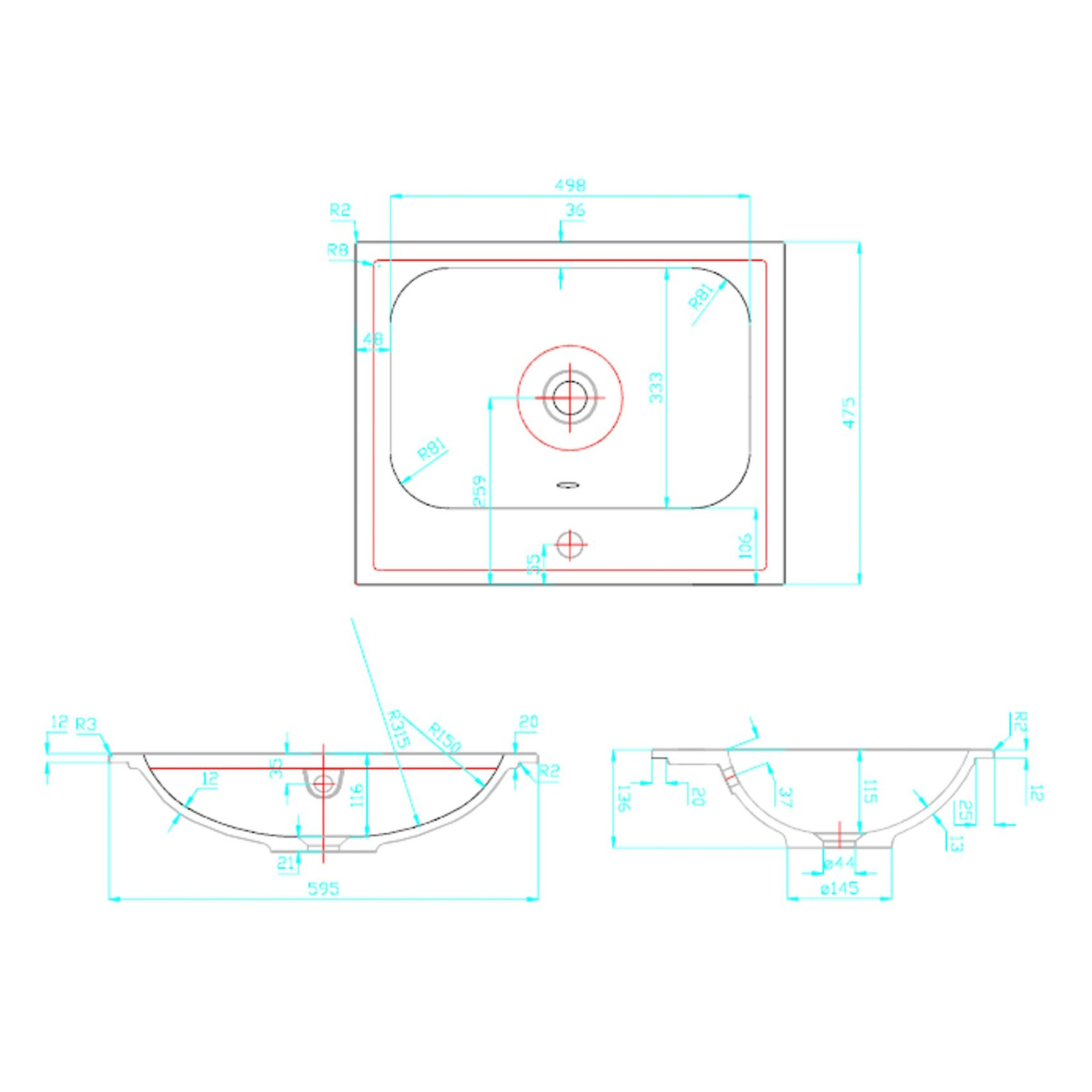 Belangrijk, deze wastafel wordt geleverd zonder kraan, afvoerplug en afvoermateriaal, deze dient u zelf bij te bestellen.