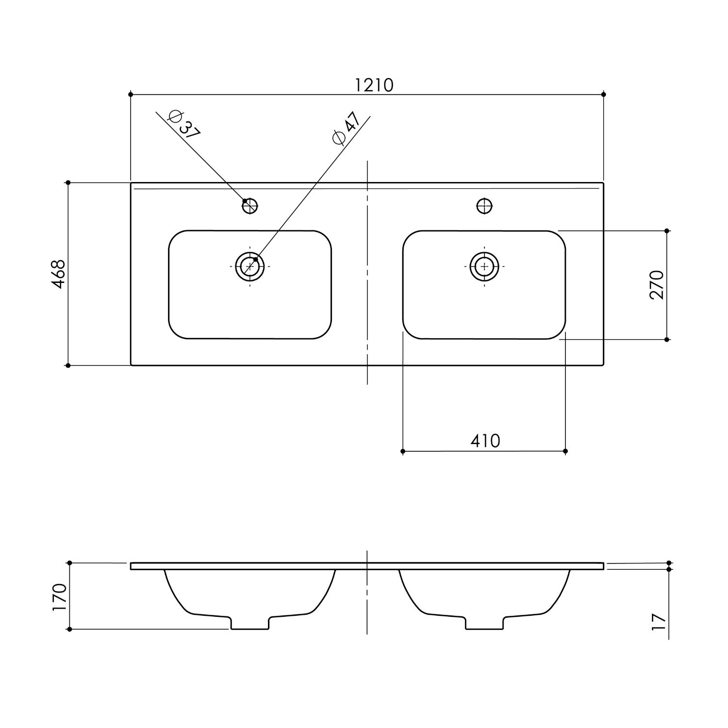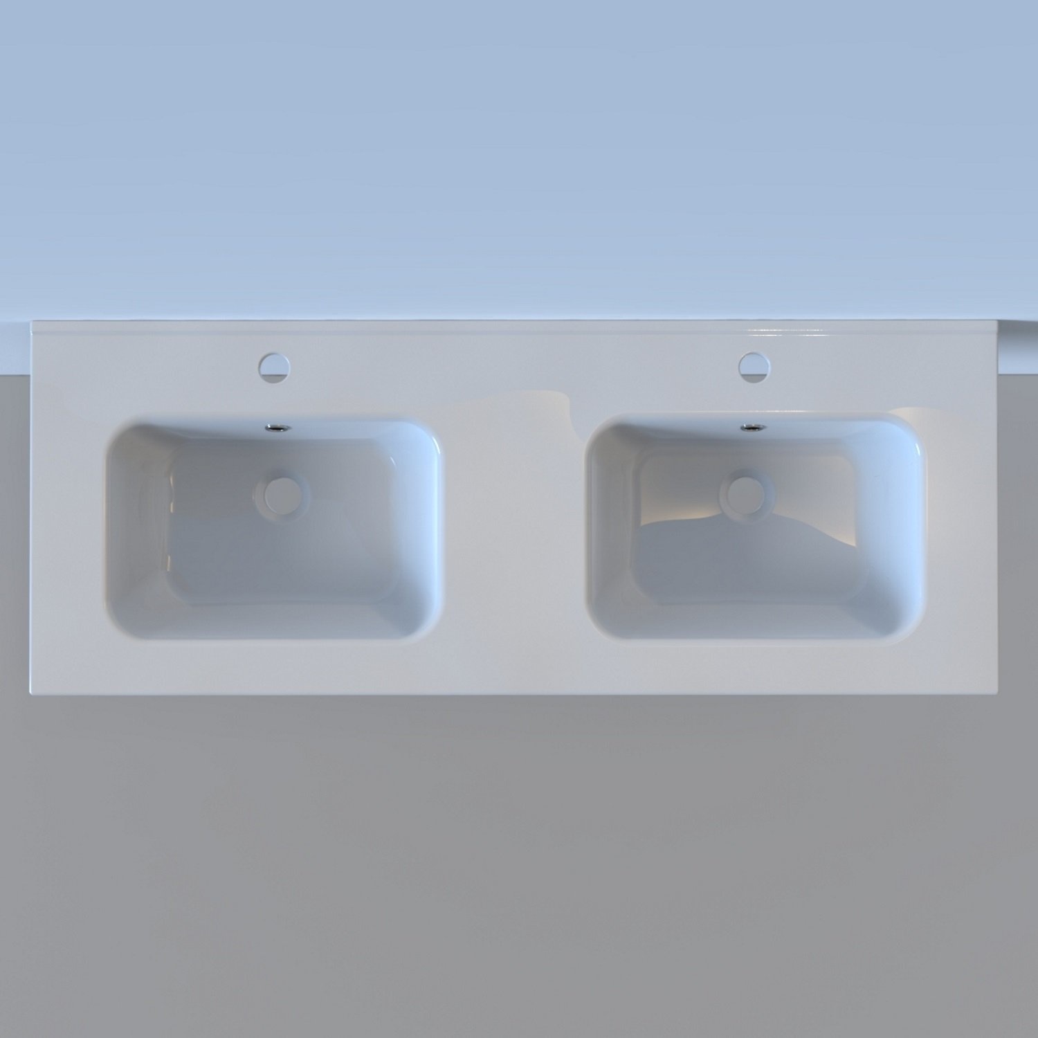 Deze wastafel is van ons eigen merk Boss & Wessing en behoort tot d Pakaru-serie. De wastafel is gemaakt van keramiek en is uitgerust met twee kraangaten en twee wasbakken met een overloop. De overloop zorgt ervoor dat de wastafel niet kan overstromen. Deze wastafel is afgewerkt in een glanzend witte kleur. Het artikel heeft een breedte van 121,5 cm, een diepte van 46,5 cm en een hoogte van 17 cm.