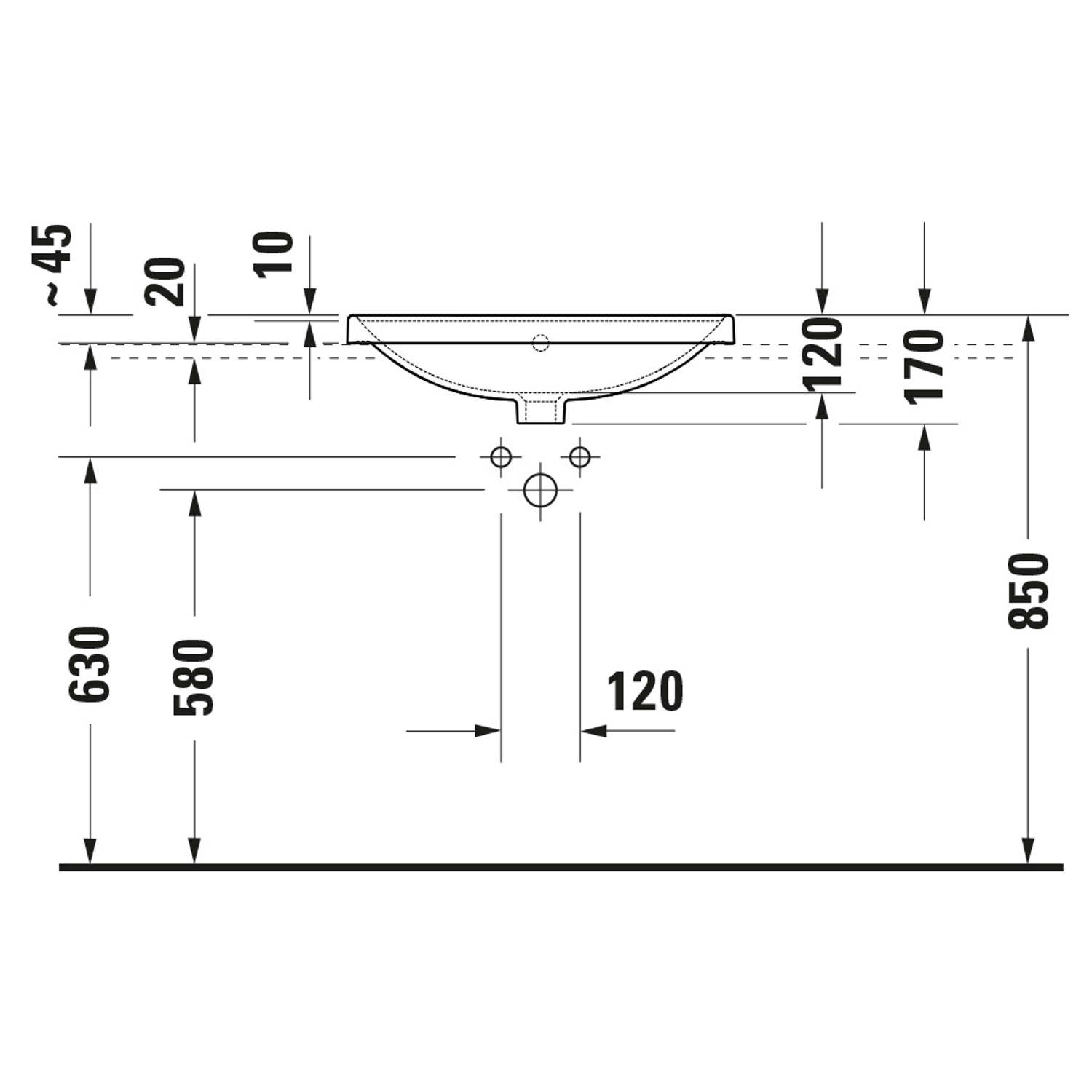 Deze wastafel heeft een rechthoekige vorm en heeft een frisse witte kleur. De diepte van de wastafel is 44 cm, de breedte 60 cm en het heeft een hoogte van 17 cm. In het midden van de wastafel bevinden zich de kraangat en overloop.