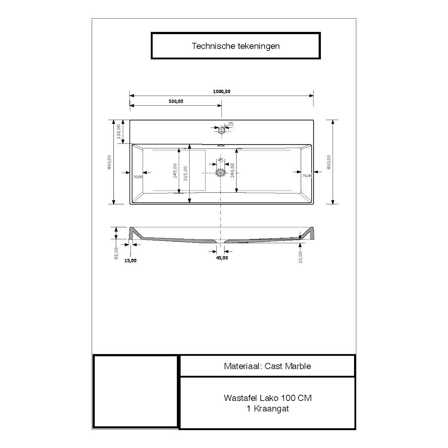Deze wastafel heeft een breedte van 100 cm en is gemaakt van cast marble in een mat beige kleur. Hij is voorzien van 1 kraangat en wordt exclusief kraan geleverd.