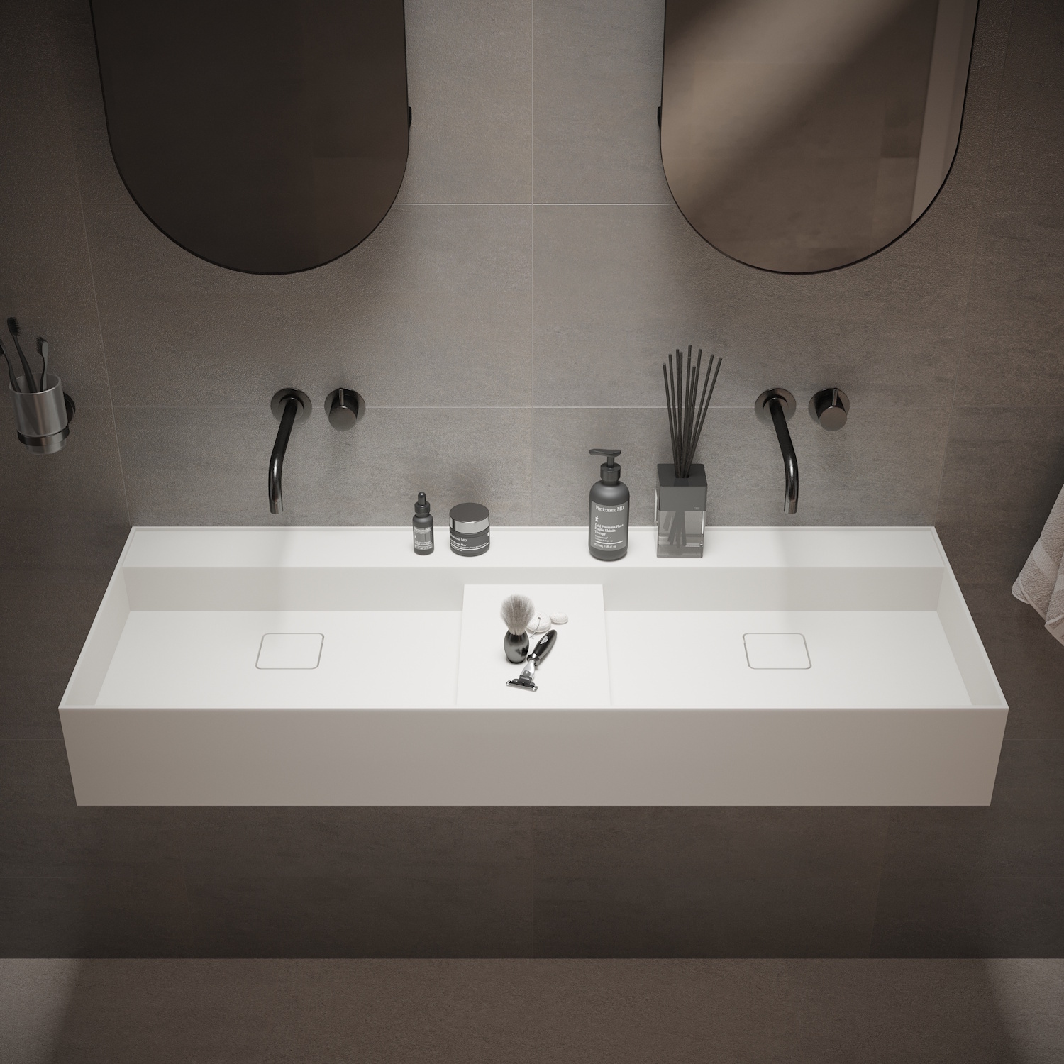 Deze wastafel is geproduceerd in de kleur mat wit en heeft een rechthoekige vorm. De hoogte van deze wastafel bedraagt 16 cm, de diepte 45 cm en de breedte 120 cm. Het matte, fluweelachtige oppervlak van de wastafel voelt prettig aan en is makkelijk schoon te maken en te onderhouden. Het artikel wordt geleverd met een bevestigingsset. Het water wordt afgevoerd door een smalle goot op de bodem van de wastafel.
