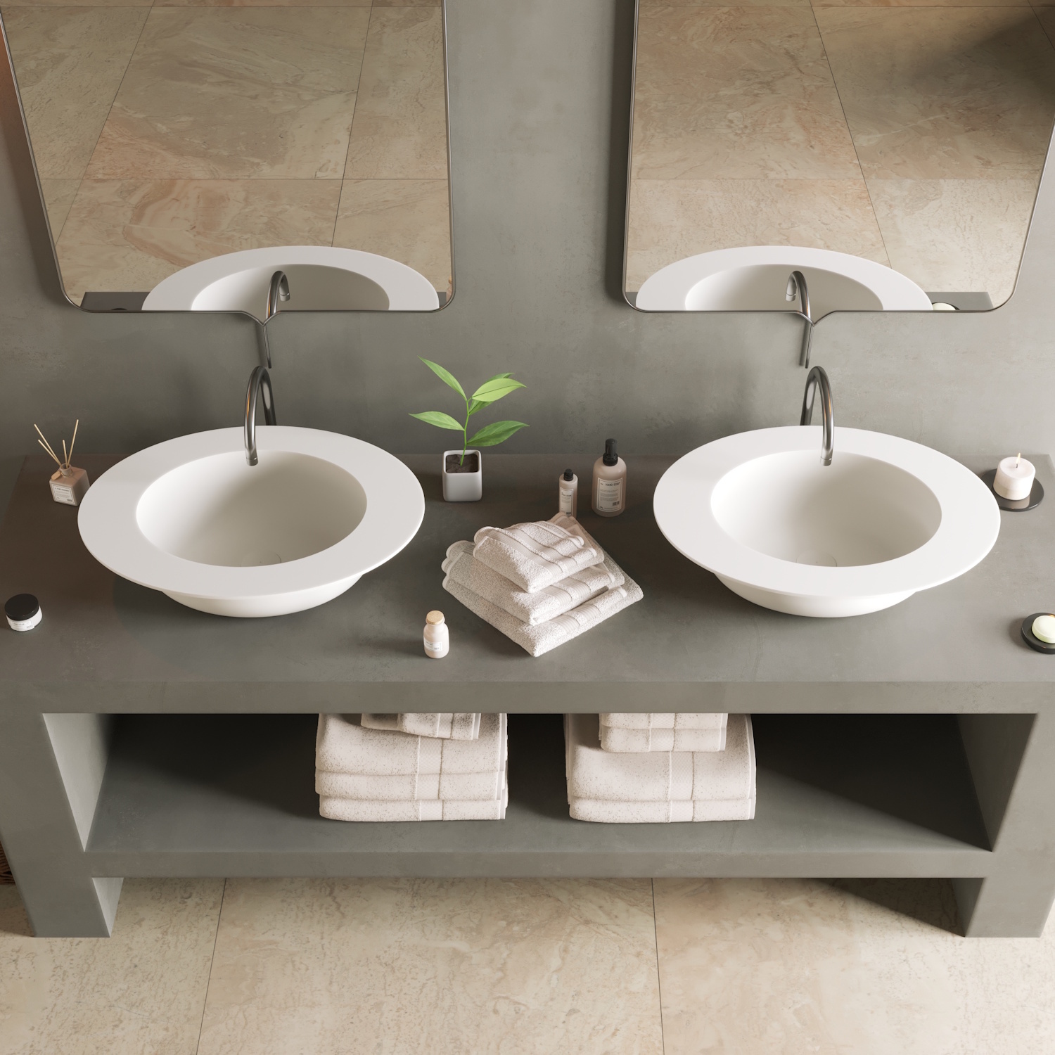 Solid Surface is uitstekend geschikt om sanitaire producten van te maken omdat het geen poriën en naden heeft. Solid Surface is een composiet, geproduceerd uit mineralen en harsen. Bovendien is dit materiaal bestendig tegen vocht, vlekken, en zelfs chemische stoffen. Er trekt dus niets in, is niet poreus en heeft een intense kleur en is gemakkelijk schoon te houden. Omdat het door en door van hetzelfde materiaal bestaat, kunnen eventuele beschadigingen weg gepolijst worden. Perfect om de hygiëne te behouden in jouw design badkamer of toilet.