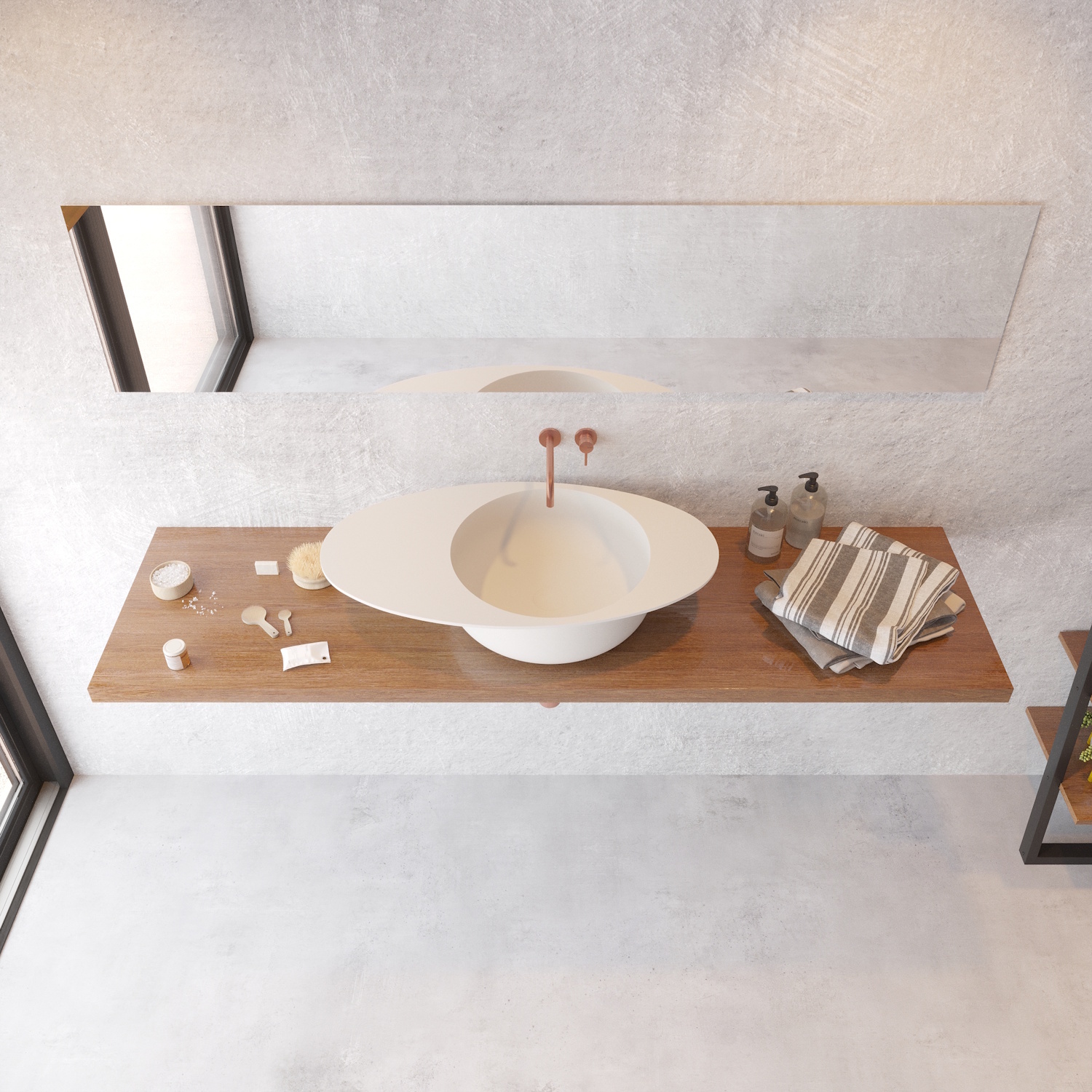Solid Surface is uitstekend geschikt om sanitaire producten van te maken omdat het geen poriën en naden heeft. Solid Surface is een composiet, geproduceerd uit mineralen en harsen. Bovendien is dit materiaal bestendig tegen vocht, vlekken, en zelfs chemische stoffen. Er trekt dus niets in, is niet poreus en heeft een intense kleur en is gemakkelijk schoon te houden. Omdat het door en door van hetzelfde materiaal bestaat, kunnen eventuele beschadigingen weg gepolijst worden. Perfect om de hygiëne te behouden in jouw design badkamer of toilet.