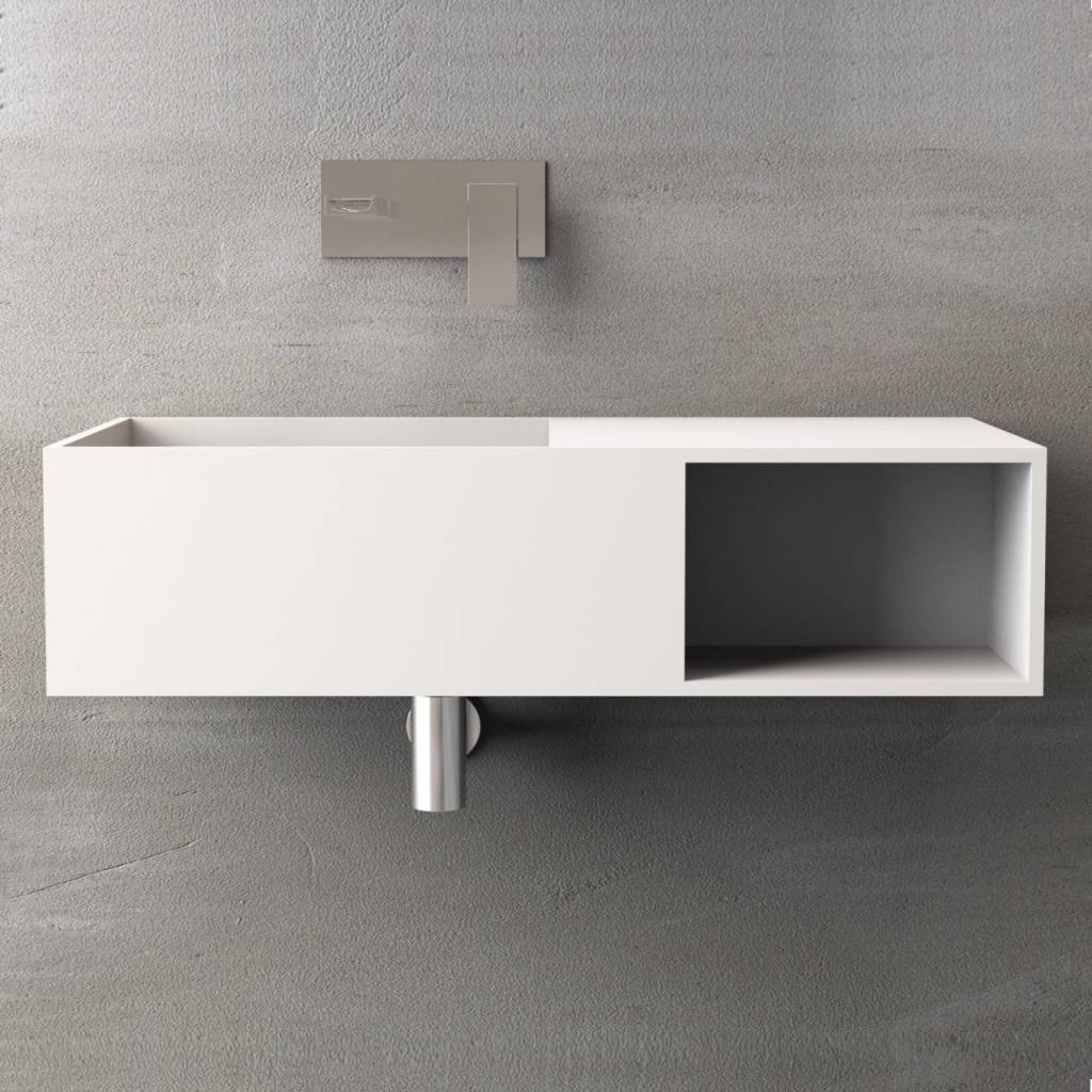Deze wastafel is geproduceerd in de kleur mat wit en heeft een rechthoekige vorm. De hoogte van deze wastafel bedraagt 20 cm, de diepte 40 cm en de breedte 80 cm. De wastafel is aan de rechter onderkant uitgerust met een open vak waar u verschillende badkamerproducten in kwijt kunt. Het matte, fluweelachtige oppervlak van dit artikel voelt prettig aan en is makkelijk schoon te maken en te onderhouden. De wastafel wordt geleverd met een bevestigingsset en beschikt over een ingebouwde waste.
