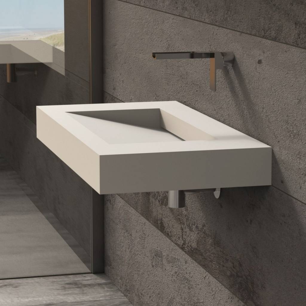 Deze wastafel is geproduceerd in de kleur mat wit en heeft een rechthoekige vorm. De hoogte van deze wastafel bedraagt 10 cm, de diepte 46 cm en de breedte 90 cm. Het matte, fluweelachtige oppervlak van dit artikel voelt prettig aan en is makkelijk schoon te maken en te onderhouden. De wastafel wordt geleverd met een bevestigingsset. Het water in de wasbak wordt afgevoerd door een smalle goot aan de achterkant.