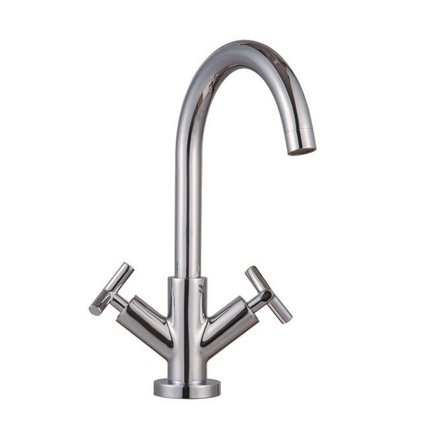 De Eliot wastafelkraan van het merk Schutte is gemaakt van messing en heeft een chromen afwerking. De mengkraan bevat twee grepen waarmee de temperatuur van het water eenvoudig geregeld kan worden.