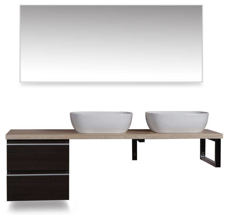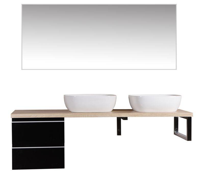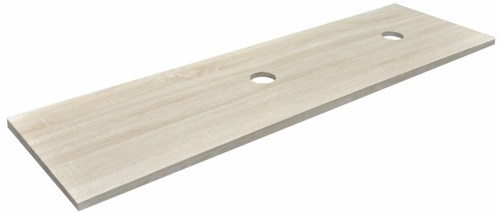 wastafelblad 1600 x 460 x 36 voor 2 wastafels licht eiken Dit blad combineren met een ladekast, een L-beugel en een vierkante beugel wastafels zowel links als rechts te plaatsen Eventuele kraangaten zelf aan te brengen