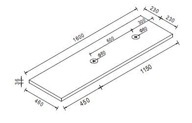 wastafelblad<br/> 1600 x 460 x 36<br/> voor 2 wastafels<br/> licht eiken<br/> Dit blad combineren met een ladekast, een L-beugel en een vierkante beugel<br/> wastafels zowel links als rechts te plaatsen<br/> Eventuele kraangaten zelf aan te brengen<br/>