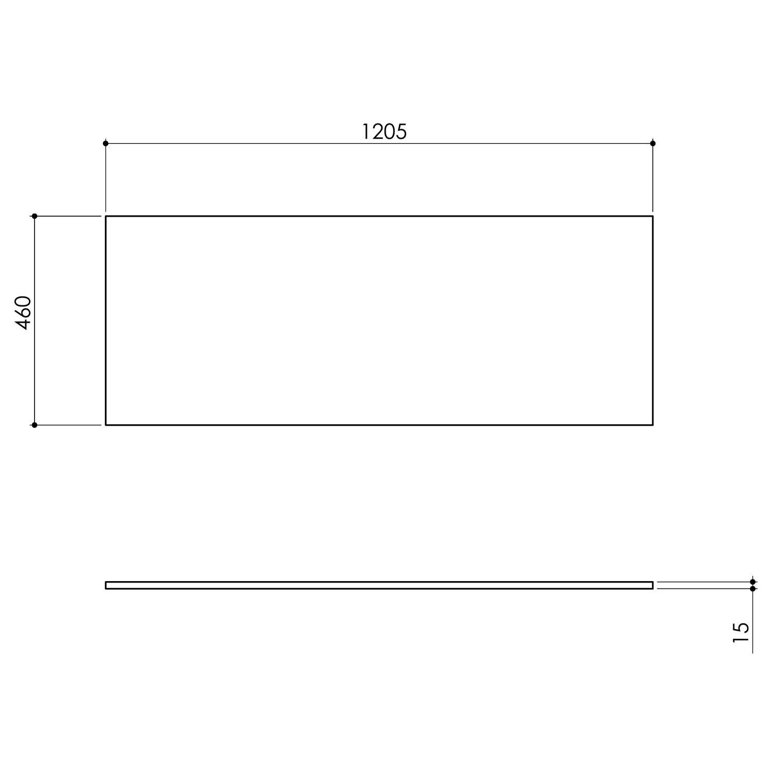 De afmetingen van het wastafelblad zijn 120.5 cm breed, 46 cm diep en 1.5 cm hoog.