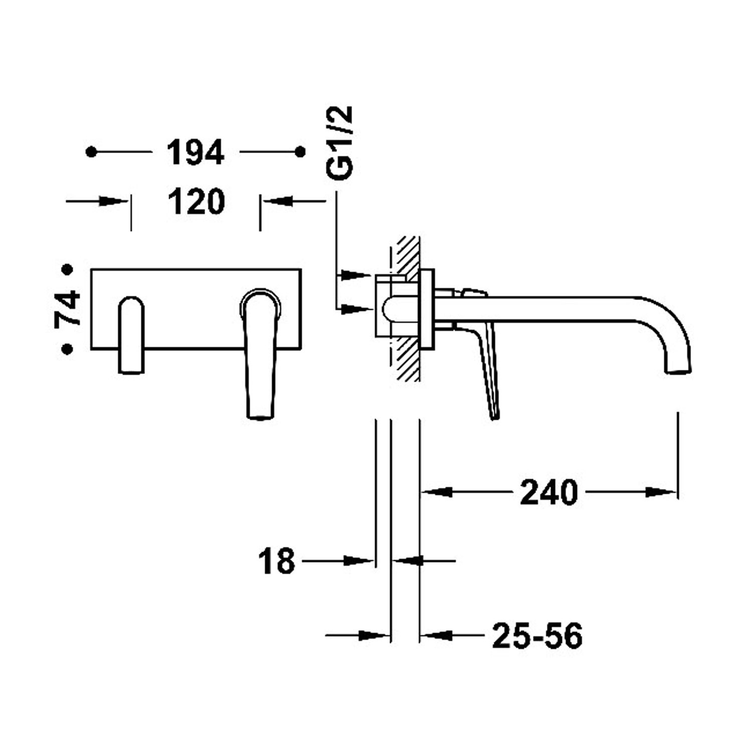 De afmetingen van deze Wastafelkraan inbouw zijn: 24 cm lang en de bediensngsplaat heeft een lengte van 7.4 cm en een breedte van 19.4 cm.