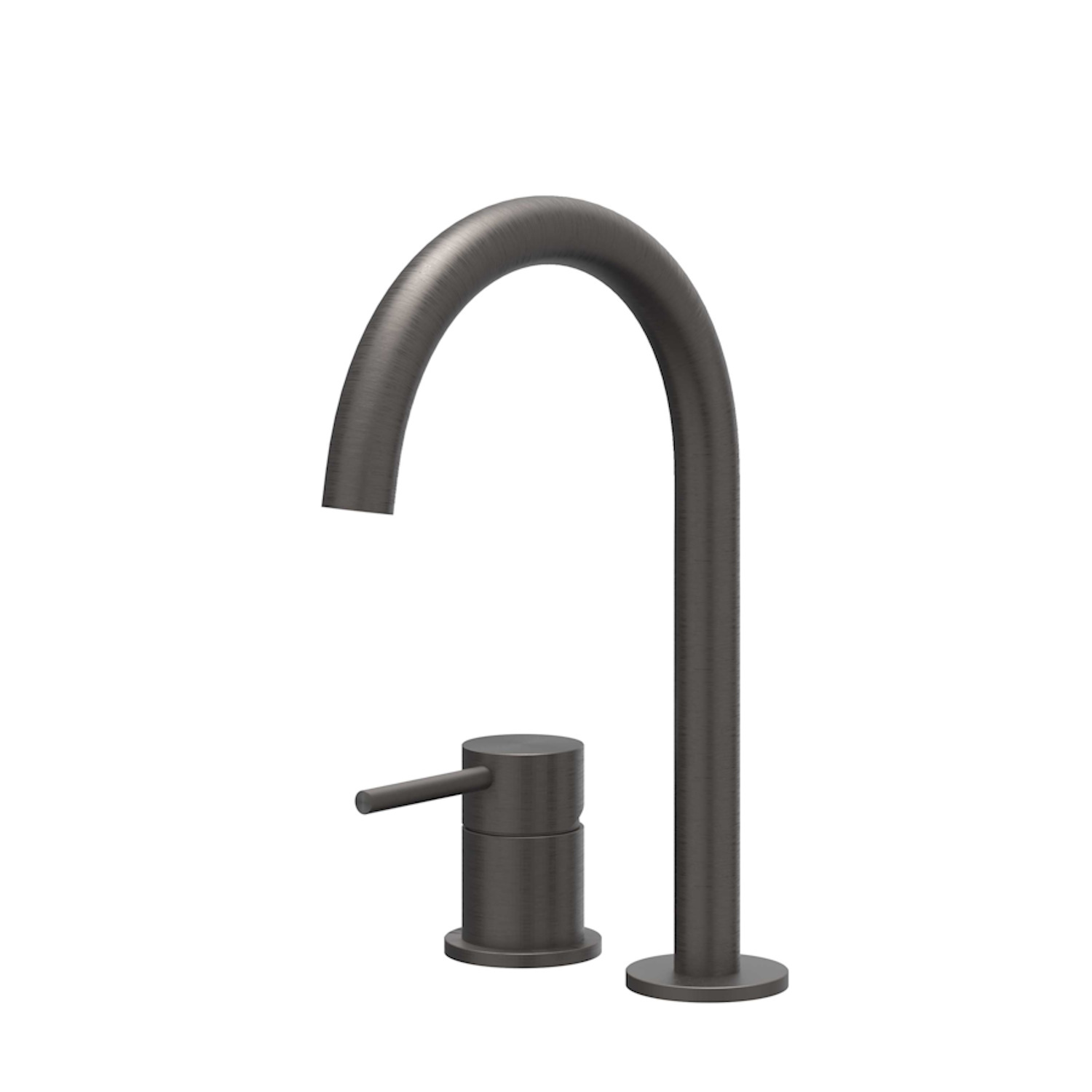 Deze wastafelkraan is van het merk IVY behoord tot de serie Concord en is gemaakt van RVS316. De mengkraan is Zwart van kleur en heeft een geborstelde carbon finish met een PVD-coating. De kraan heeft een eenhendelbediening voor eenvoudig gebruik en een 2-gats bladmontage voor een opgeruimde uitstraling. De minimale afmeting tussen de kraan en de kraanbediening is 12 cm. De IVY Concord kraan is niet alleen stijlvol maar ook duurzaam door de Coldstart mechanisme. Wanneer de kraan op een neutrale positie of een licht afwijkende positie geopend wordt, komt er volledig koud water uit de kraan gelopen. Er komt dus geen gemengd water uit de kraanuitloop zoals bij een normale kraan. Het verbruik is maximaal 5,7L water per min.