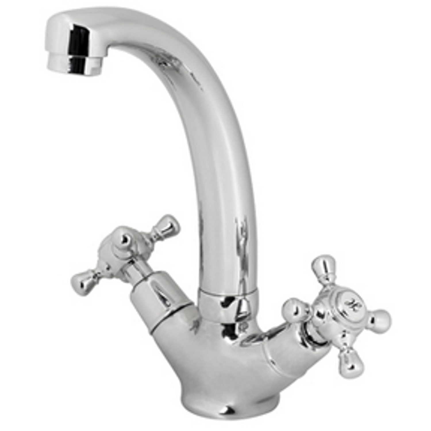 Als u opzoek bent naar een wastafelkraan met klassiek design is deze kraan van Plieger Charleston zeker geschikt. Door de kruisgrepen en de vorm van de uitloop oogt deze kraan klassiek. Hij is 22,3 cm hoog, 15,6 cm breed en 11 cm diep. De kraan is van messing in chroom kleur.