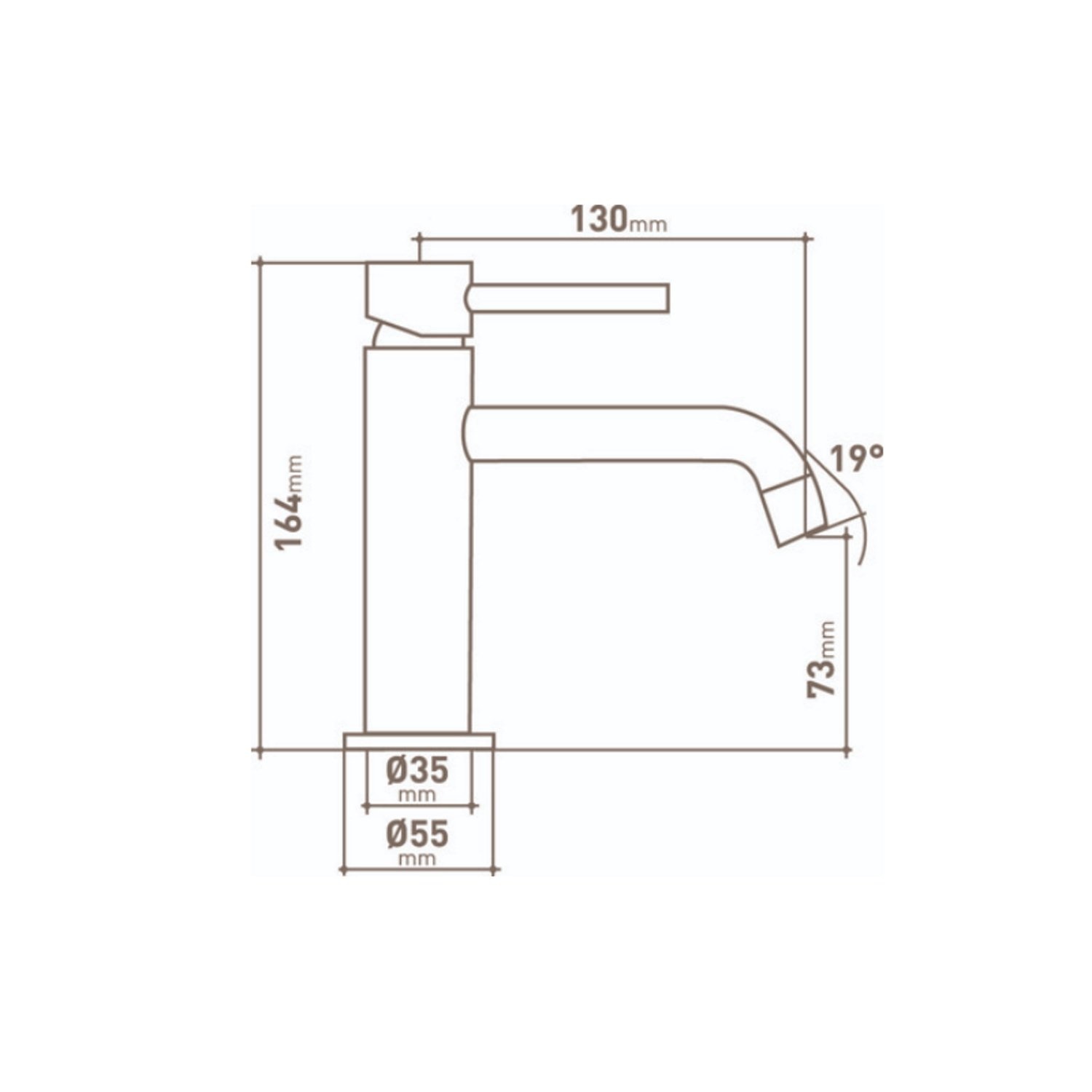 De wastafelkraan is waterbesparend, inclusief flexibele slangen en montage set. De wastafelkraan heeft een hoogte van 16,4cm, breedte is 13cm en een hoogte uitloop van 7,3cm. De wastafelkraan is gemaakt van messing en heeft de afwerking van Inox (RVS look).