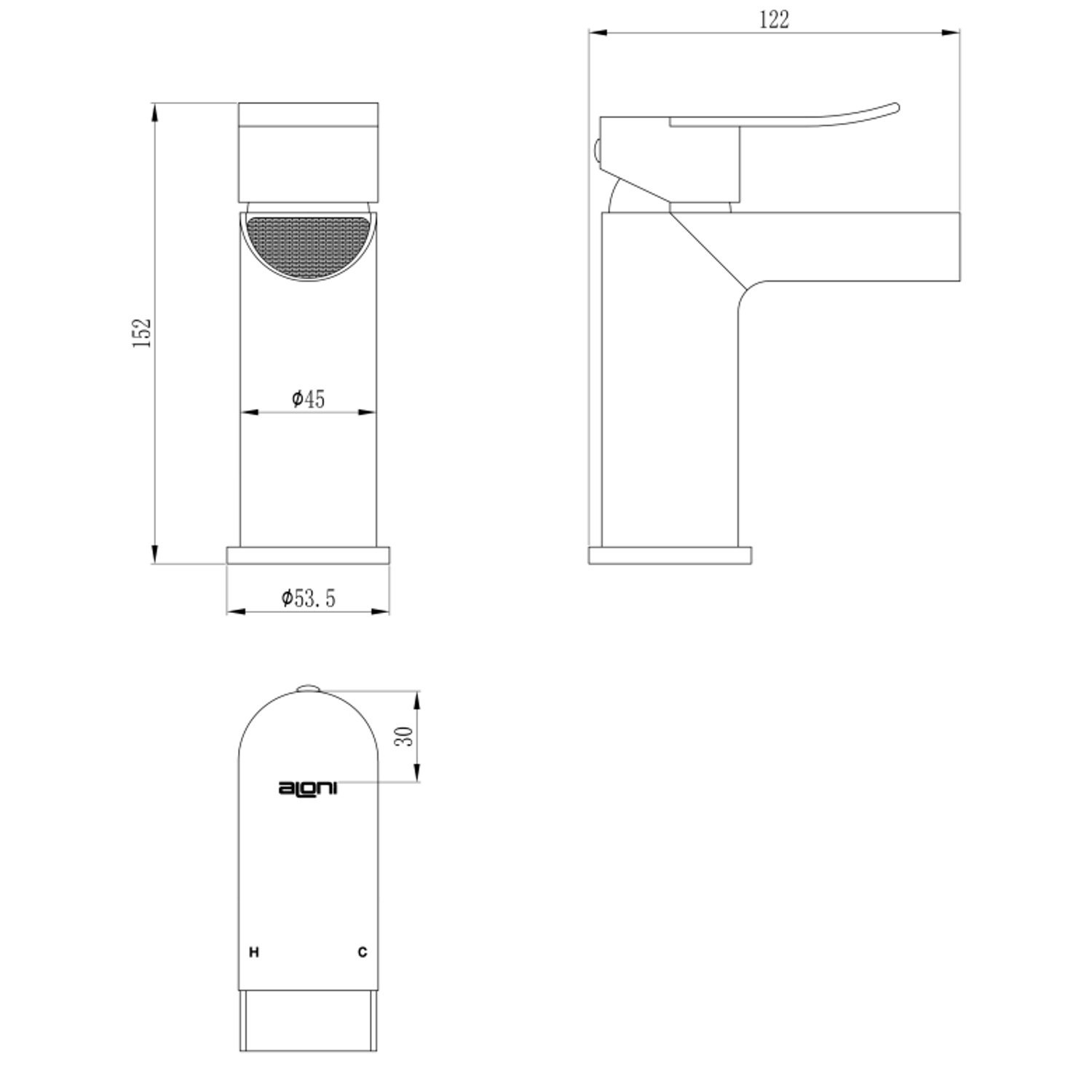 De wastafelmengkraan is 15,2 cm hoog en heeft een lengte van 12,2 cm.