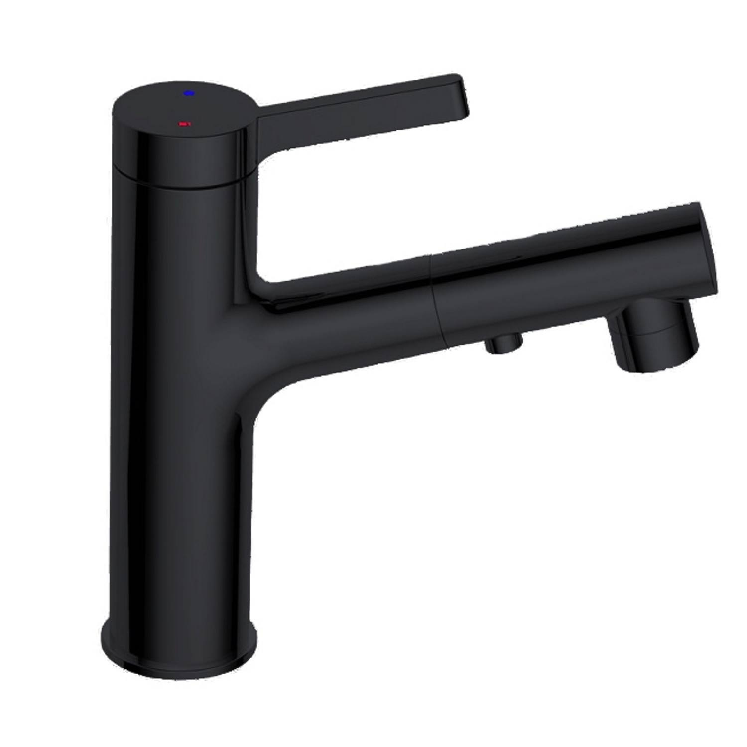 Mooi afgewerkt Wastafelmengkraan in het mat zwart! Met extra uittrekbare sproeiuitloop.