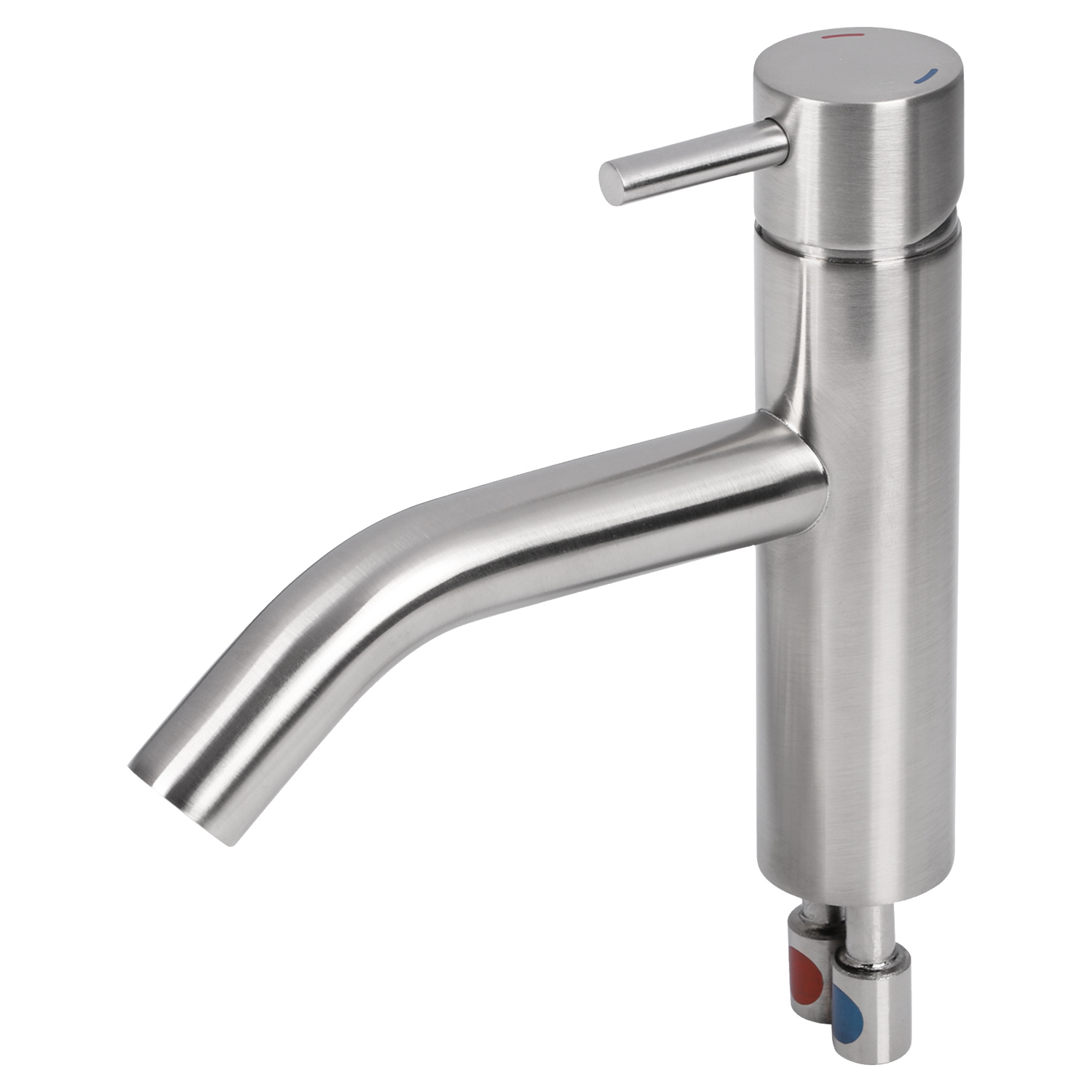 Deze stoere en compacte wastafel kraan van Differnz past met zijn industriele uiterlijk perfect in de badkamers van nu! Deze mengkraan is 13.8 cm hoog en 16.3 cm diep. Ondank de compacte afmetingen is de kraan gemakkelijk in gebruik. De kraan is goed te combineren met de andere artikelen van Differnz. Kies bijvoorbeeld voor een chrome sifon en afvoer om uw wastafel af te maken.