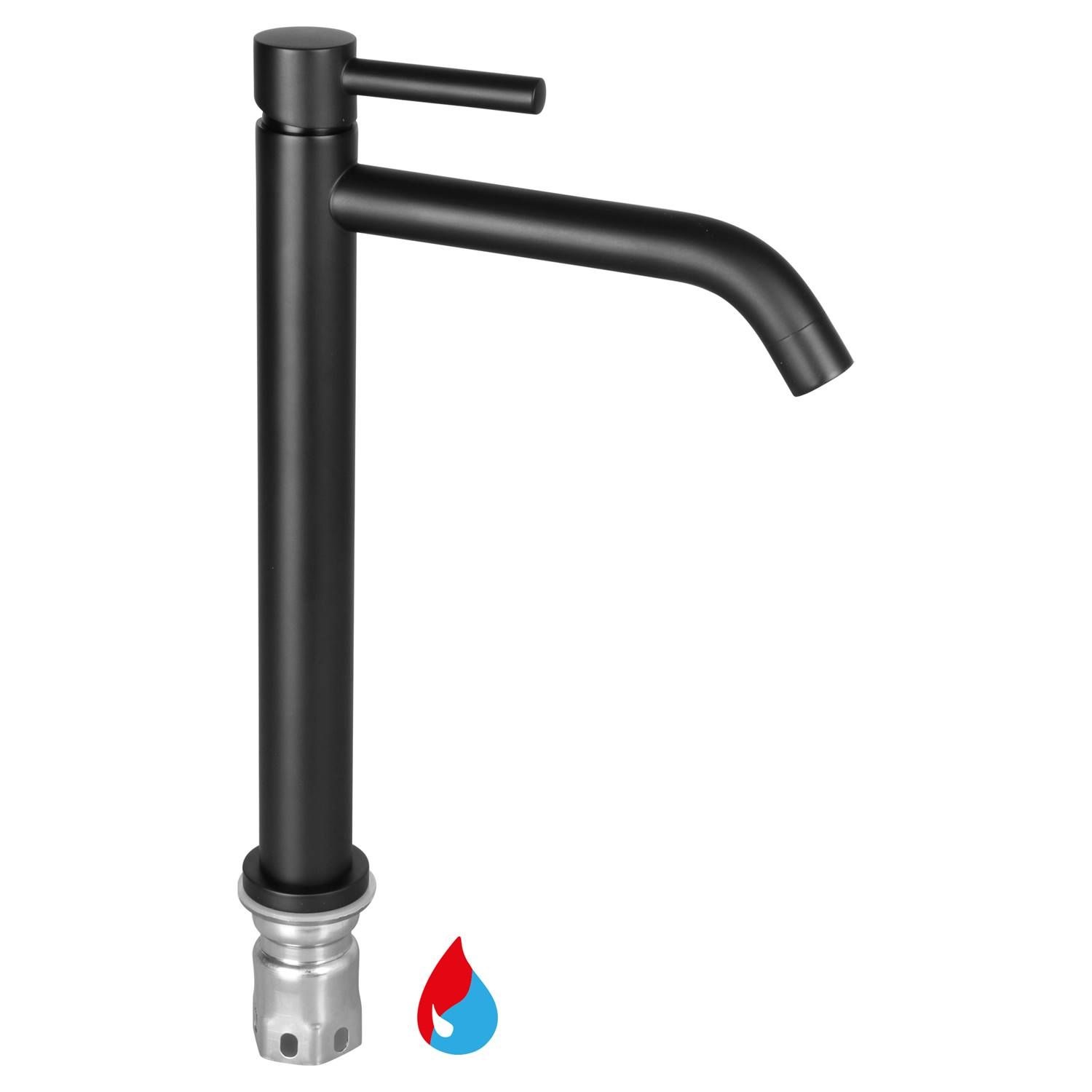 Deze stoere en compacte wastafel kraan van Differnz past met zijn industriële uiterlijk perfect in de badkamers van nu! Deze mengkraan is 30.6 cm hoog en 17.4 cm diep. De kraan gemakkelijk in gebruik en past goed bij de wat hogere opbouw waskommen. De kraan is goed te combineren met de andere artikelen van Differnz. Kies bijvoorbeeld voor een mat zwarte sifon en afvoer om uw wastafel af te maken.