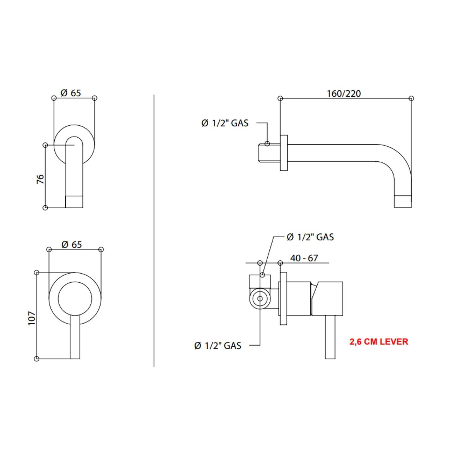 Deze kraan heeft een uitloop van 16 cm lang. De hoogte is 7,6 cm. De twee rozetten hebben een diameter van 6,5 cm en de hendel is in totaal 10,7 cm lang. U bedient de kraan door de hendel te bewegen. Zo draait u de kraan open en dicht en stelt u de gewenste temperatuur in.