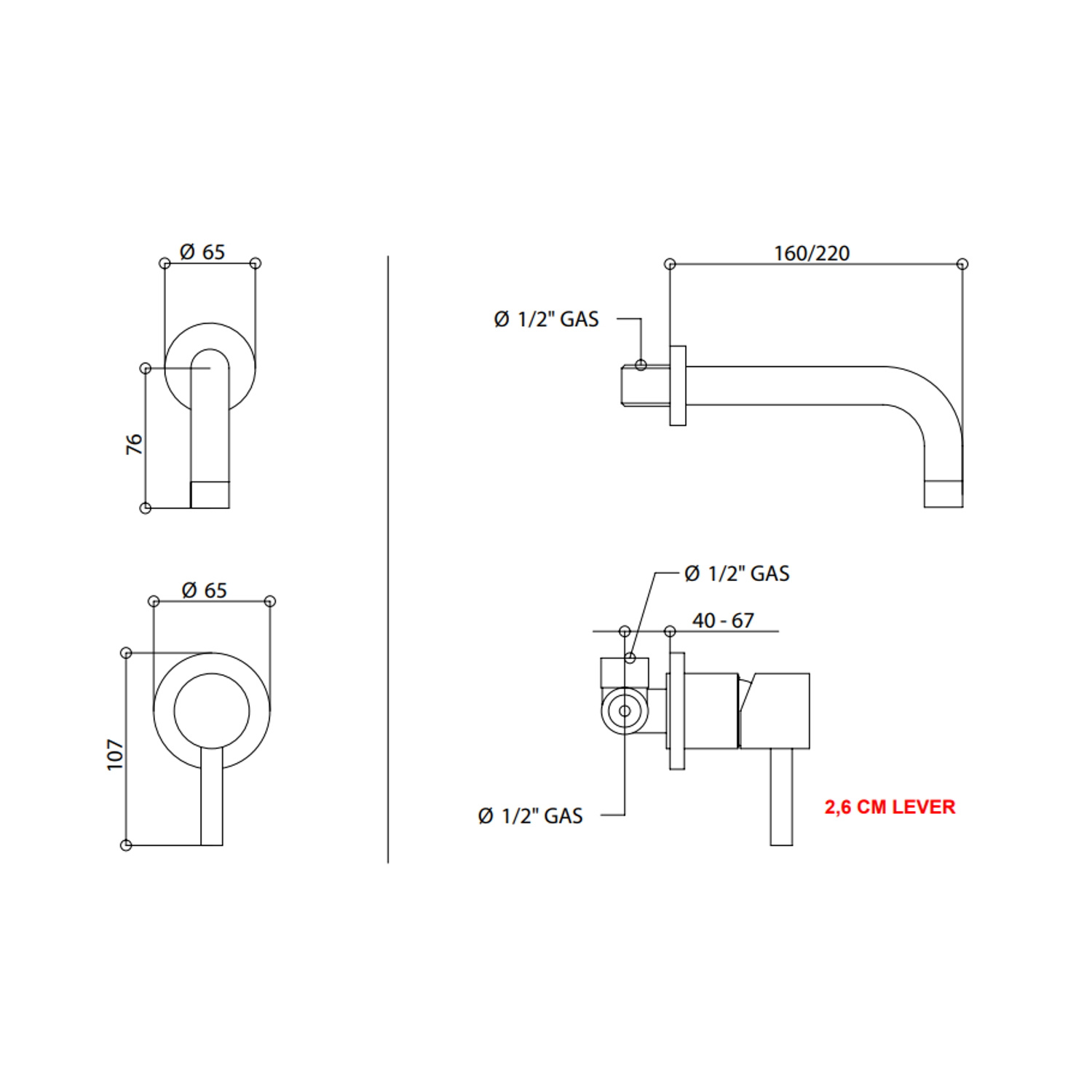 Deze kraan heeft een uitloop van 16 cm lang. De hoogte is 7,6 cm. De twee rozetten hebben een diameter van 6,5 cm en de hendel is in totaal 10,7 cm lang. U bedient de kraan door de hendel te bewegen. Zo draait u de kraan open en dicht en stelt u de gewenste temperatuur in.