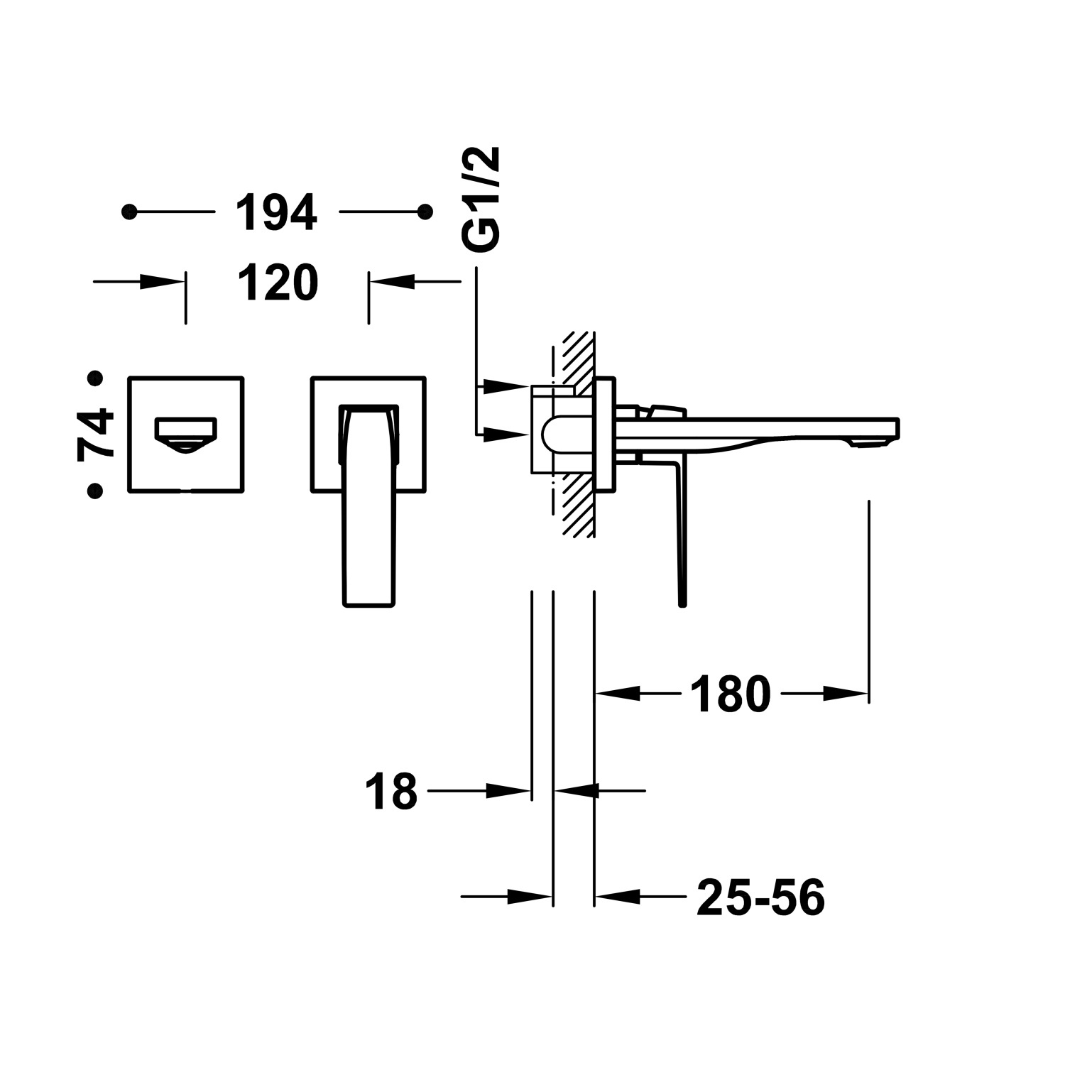 De kraan bestaat uit twee delen: de uitloop en de hendel. De afstand tussen deze twee is 12 cm. De uitloop is 18 cm lang.