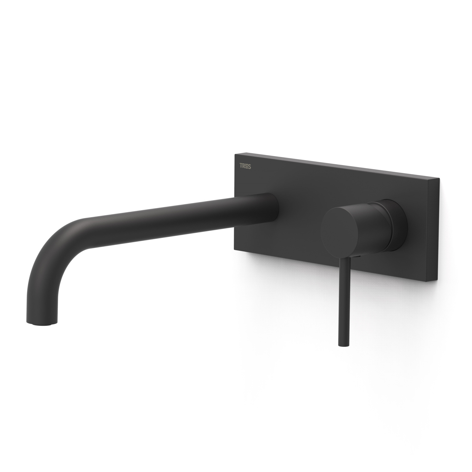 Deze inbouw wastafelkraan van de serie 'Study Exclusive' van Tres heeft een uniek design. De uitloop en hendel bevinden zich op een afdekplaat. De uitloop heeft een ronde vorm en is gebogen. Deze kraan geeft uw badkamer een moderne touch. Door zijn mat zwarte kleur past hij ook erg mooi bij een industriële of stoere woonstijl.