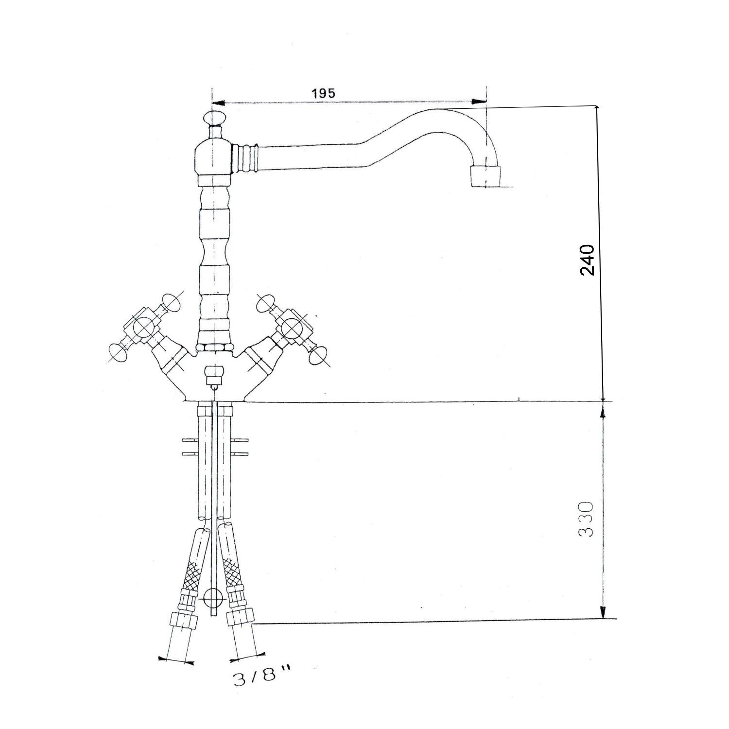 De uitloop heeft een hoogte van 17.5 cm en een lengte van 19.5 cm. De mengkraan is voorzien van een 3/8 inch aansluiting.