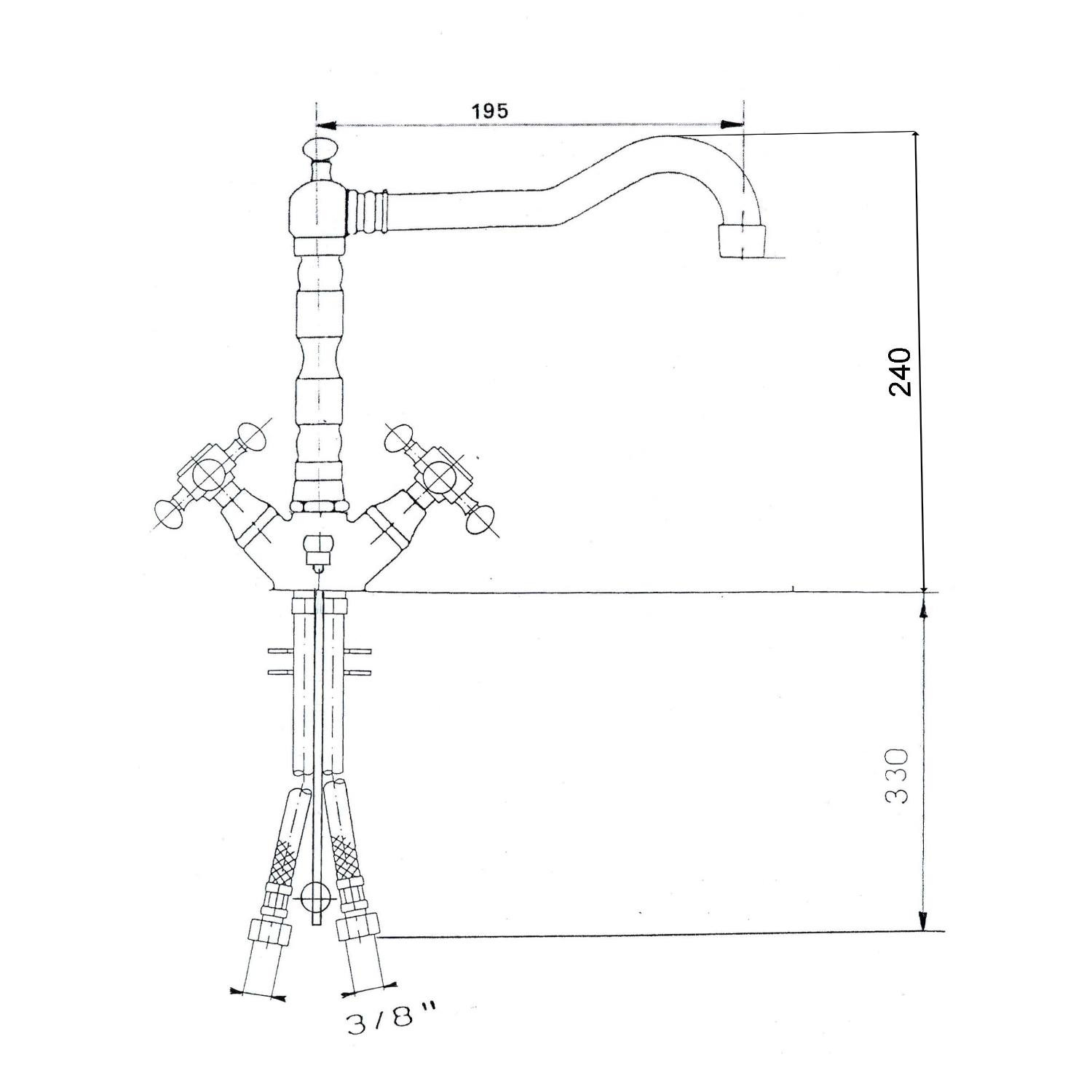 De uitloop heeft een hoogte van 17.5 cm en een lengte van 19.5 cm. De mengkraan is voorzien van een 3/8 inch aansluiting.