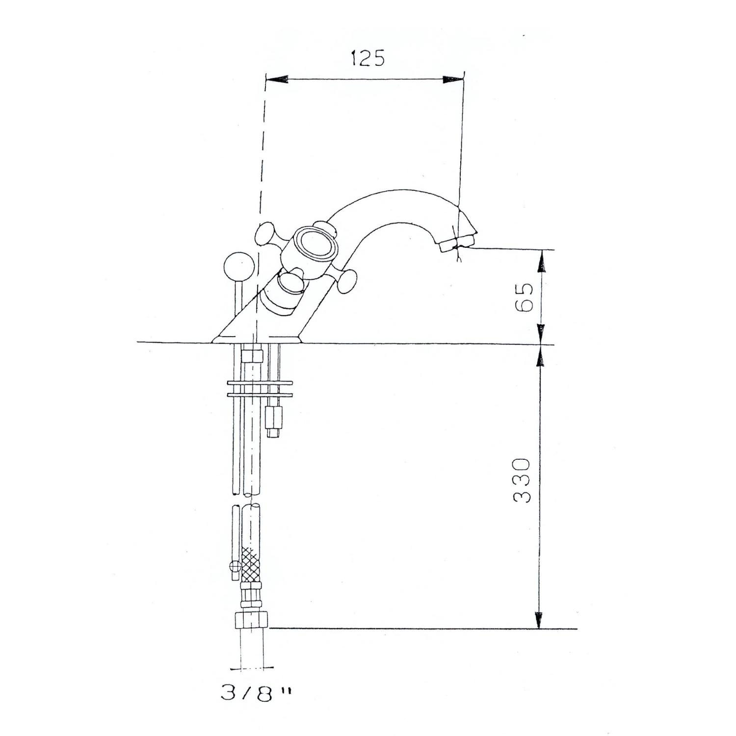 De uitloop heeft een hoogte van 6.5 cm en een diepte van 12.5 cm. De mengkraan is voorzien van een 3/8 inch aansluiting.