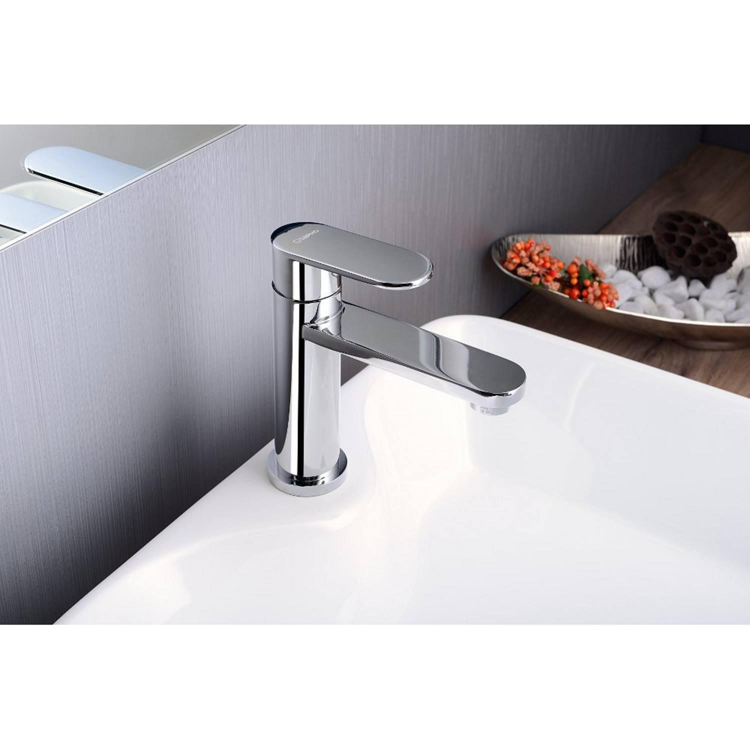 De Dandy wastafelmengkraan van het merk Sapho is geschikt voor elke moderne badkamer. De wastafelkraan is voorzien van een mengfunctie: dat houdt in dat u met de hendel warm en heet water kunt mengen tot de juiste temperatuur. U heeft geen 2 losse knoppen meer waar u mee moet stoeien om de juiste temperatuur te krijgen. De kraan heeft de hoogte van 16.8 cm. Ook heeft de kraan een keramisch binnenwerk, dit houdt de hendel jarenlang soepel in zijn beweging om water door te laten en de kraan goed te sluiten. De praktische kraan is afgewerkt in een chromen kleur.
