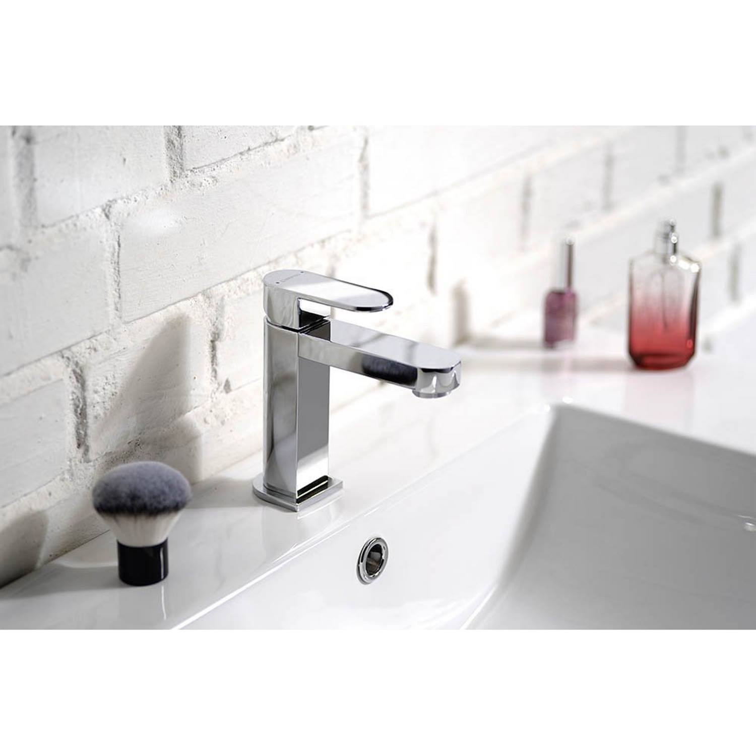 De Glam wastafelmengkraan van het merk Sapho heeft een strak design en is geschikt voor elke moderne badkamer. De wastafelkraan is voorzien van een mengfunctie: dat houdt in dat u met de hendel warm en heet water kunt mengen tot de juiste temperatuur. U heeft geen 2 losse knoppen meer waar u mee moet stoeien om de juiste temperatuur te krijgen. De kraan heeft de hoogte van 14.5 cm en een diepte van 14.1 cm. Ook heeft de kraan een keramisch binnenwerk, dit houdt de hendel jarenlang soepel in zijn beweging om water door te laten en de kraan goed te sluiten. De praktische kraan is afgewerkt in een chromen kleur.