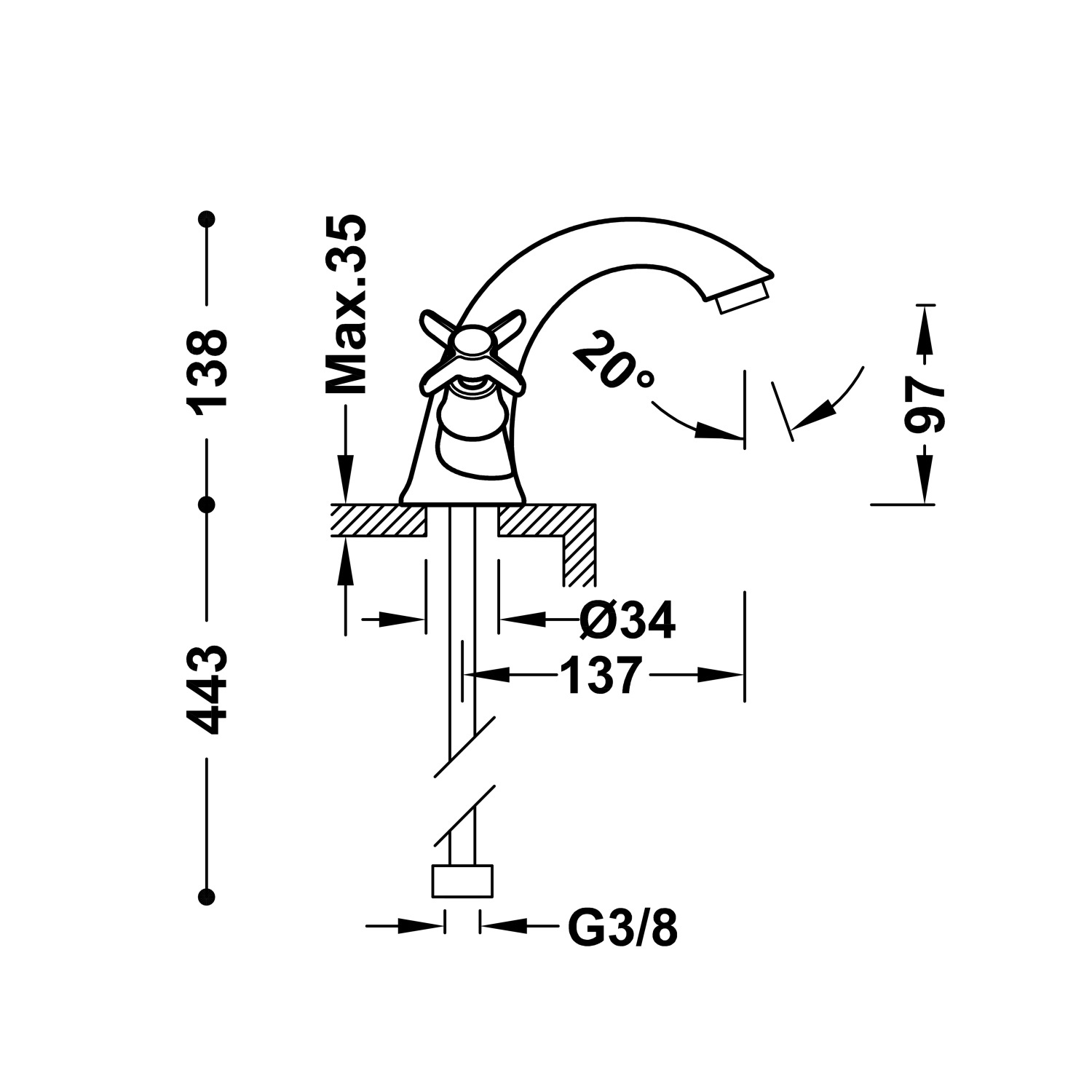 Deze wastafelmengkraan van de serie 'Clasic' van Tres heeft, zoals de serienaam al zegt een klassiek uiterlijk. De kraan is elegant en speels door zijn gebogen uitloop en heeft 2 grepen. Hij heeft een hoogte van 13,8 cm. De uitloop is 9,7 cm hoog en 13,7 cm lang. Hij is van messing en heeft een RVS look.