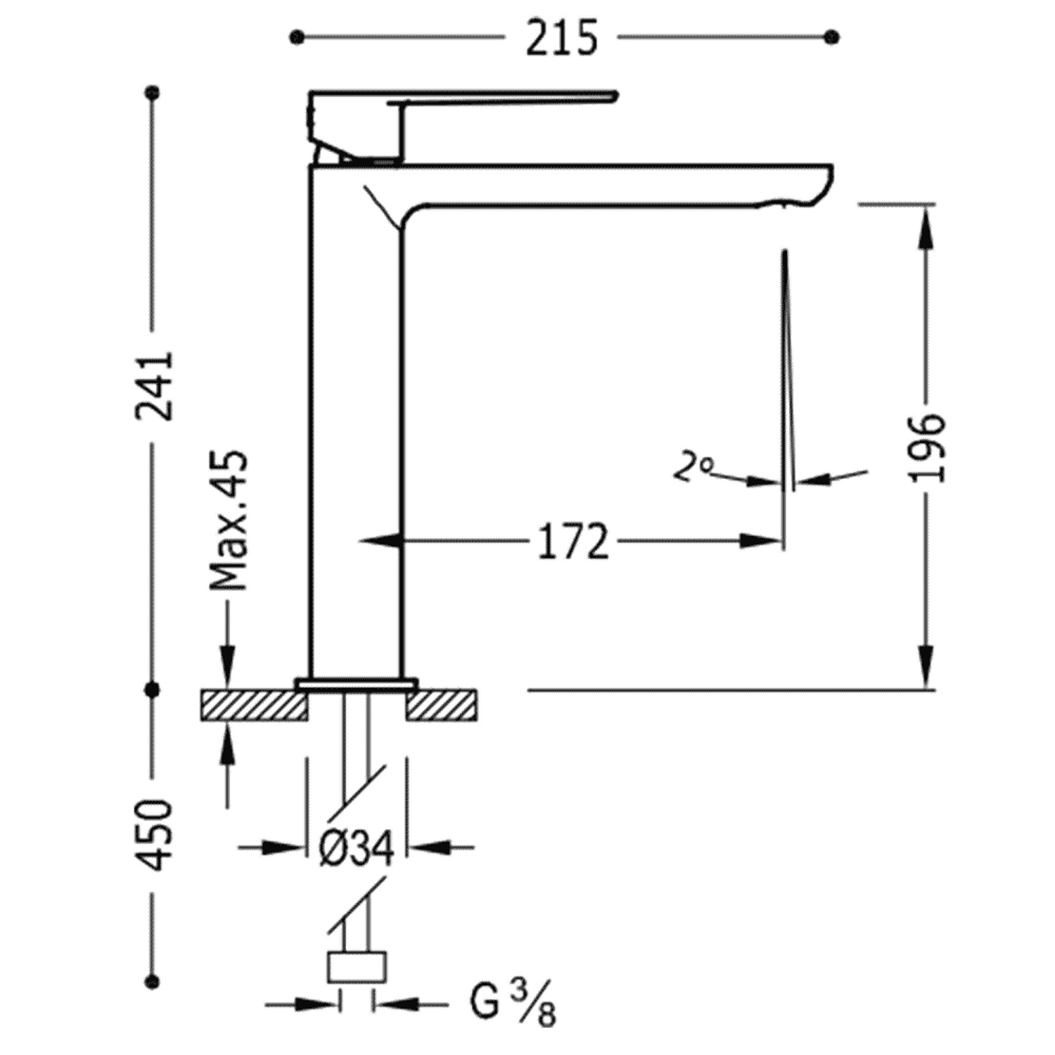 Deze wastafelmengkraan is een stijlvolle toevoeging aan uw badkamer. Het design kan worden toegepast in iedere eigentijdse badkamer. Van modern tot industrieel. De kraan heeft een rechte uitloop van 19,6 cm hoog en 17,2 cm lang. De kraan is 24,1 cm hoog. U bedient deze kraan met de hendel. U draait er de kraan mee open en dicht en u bepaalt de gewenste temperatuur ermee door warm en koud water met elkaar te mengen.