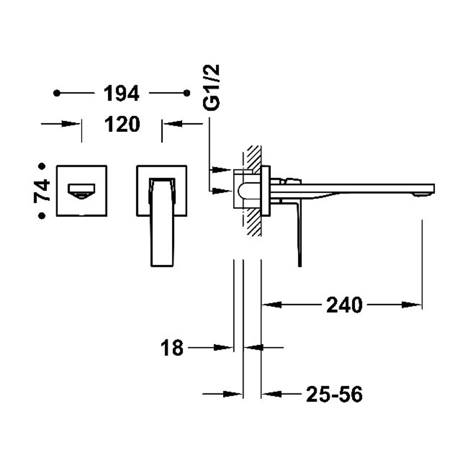 De kraan bestaat uit twee delen: de uitloop en de hendel. De afstand tussen deze twee is 12 cm. De uitloop is 24 cm lang.