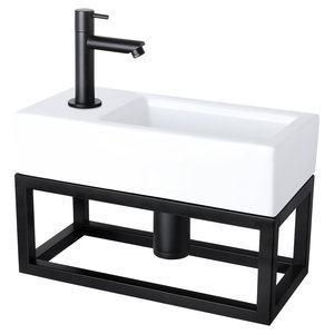 Fonteinset Differnz Helios Met Handoekrek 37.5x18.5x9.5 cm Marmer Wit Met Rechte Kraan Links Mat Zwart