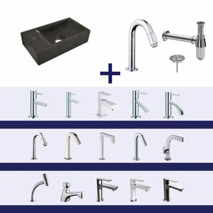 Fonteinpack Chepri XXS Links Keramiek 30.5x18x11 cm Zwart (Keuze uit 4 kranen)