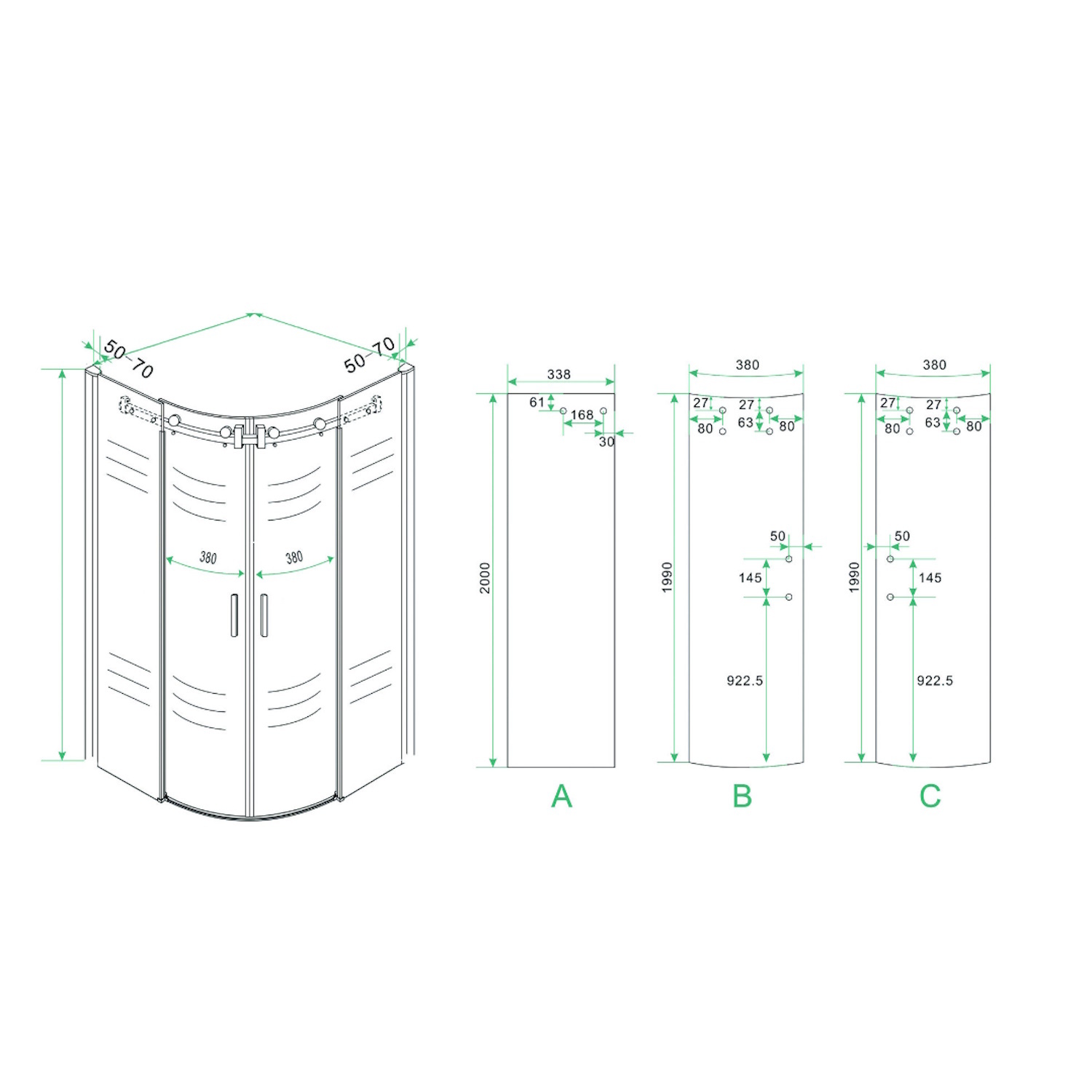 Zeer fraaie cabine bestaande uit 2 schuifdeurtjes in de hoek