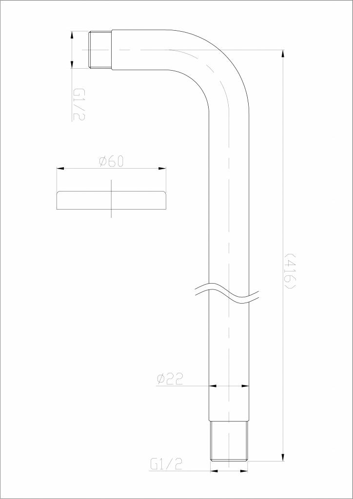 304-gebogen douchearm rond muurbevestiging 40cm RVS
