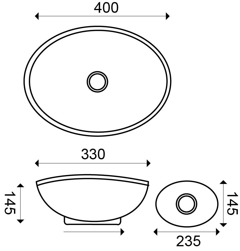 Barco keramische opzetwastafel, 400x330x145 mm, zonder overloop, kleur: wit,