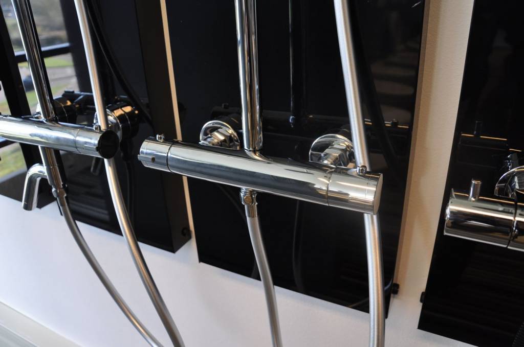 met thermostatische douchemengkraan chroom, voorzien van kunststof knoppen> Mengkraan aansluiting h-h 15cm