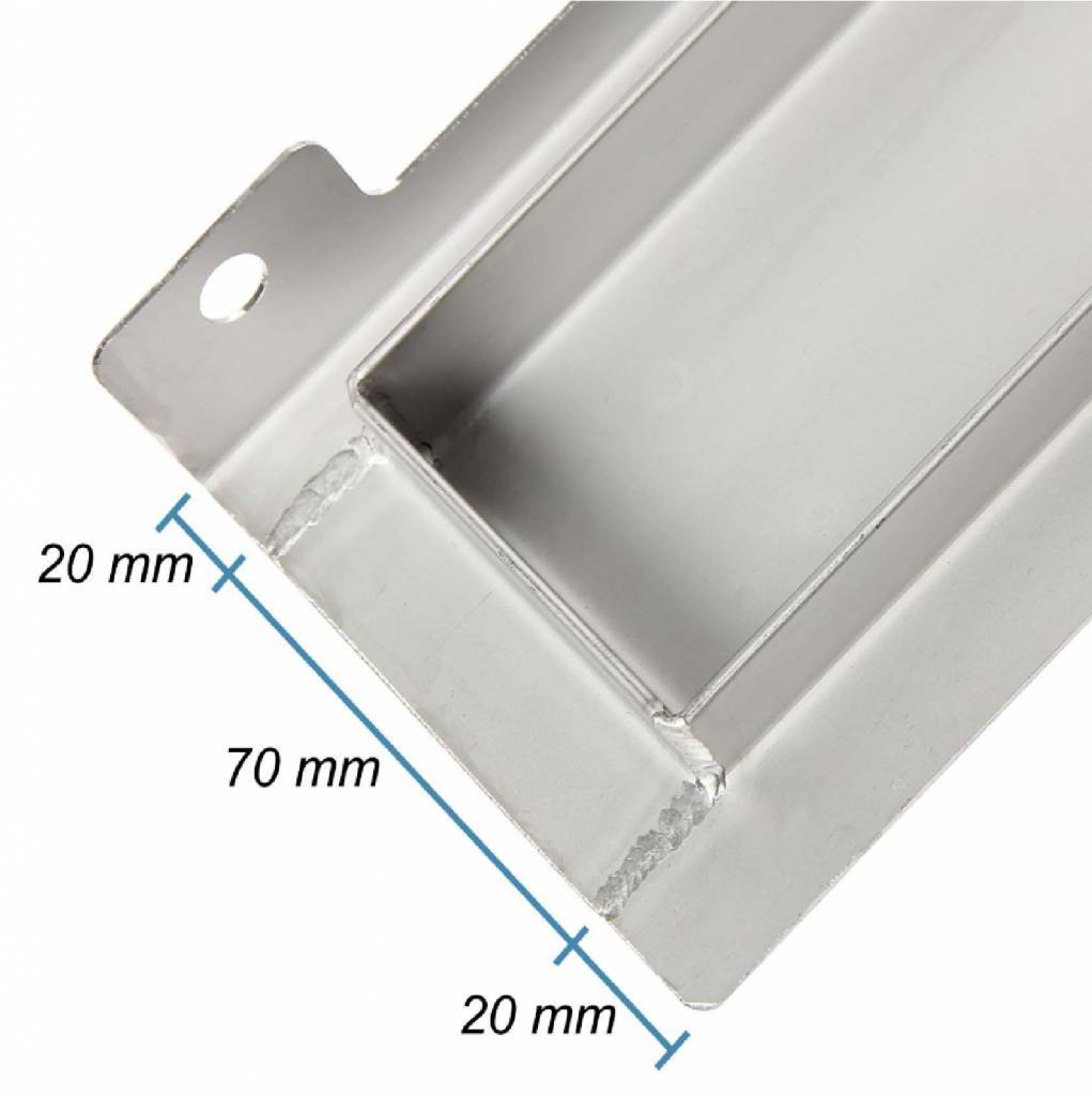 De goot is slechts 7cm breed en is voorzien van een standaard 80cm rooster, hiervan zijn verschillende versies te bestellen.