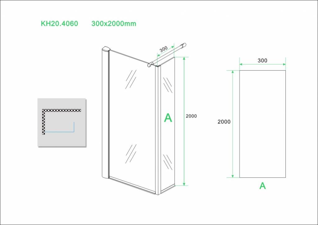 Wiesbaden eco zijwand met hoekprofiel 300x2000, 8 mm Nano
