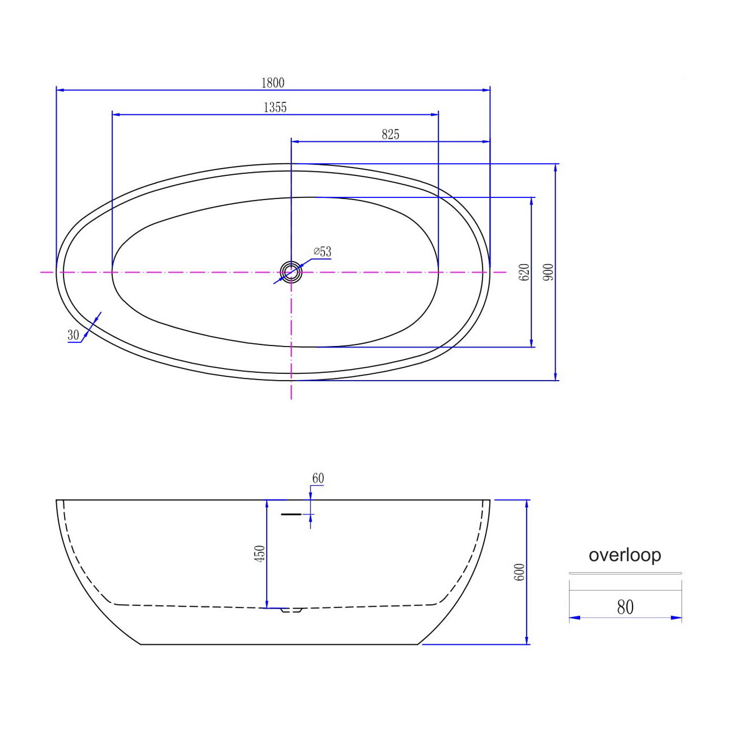 Ellips vrijstaand acryl ligbad