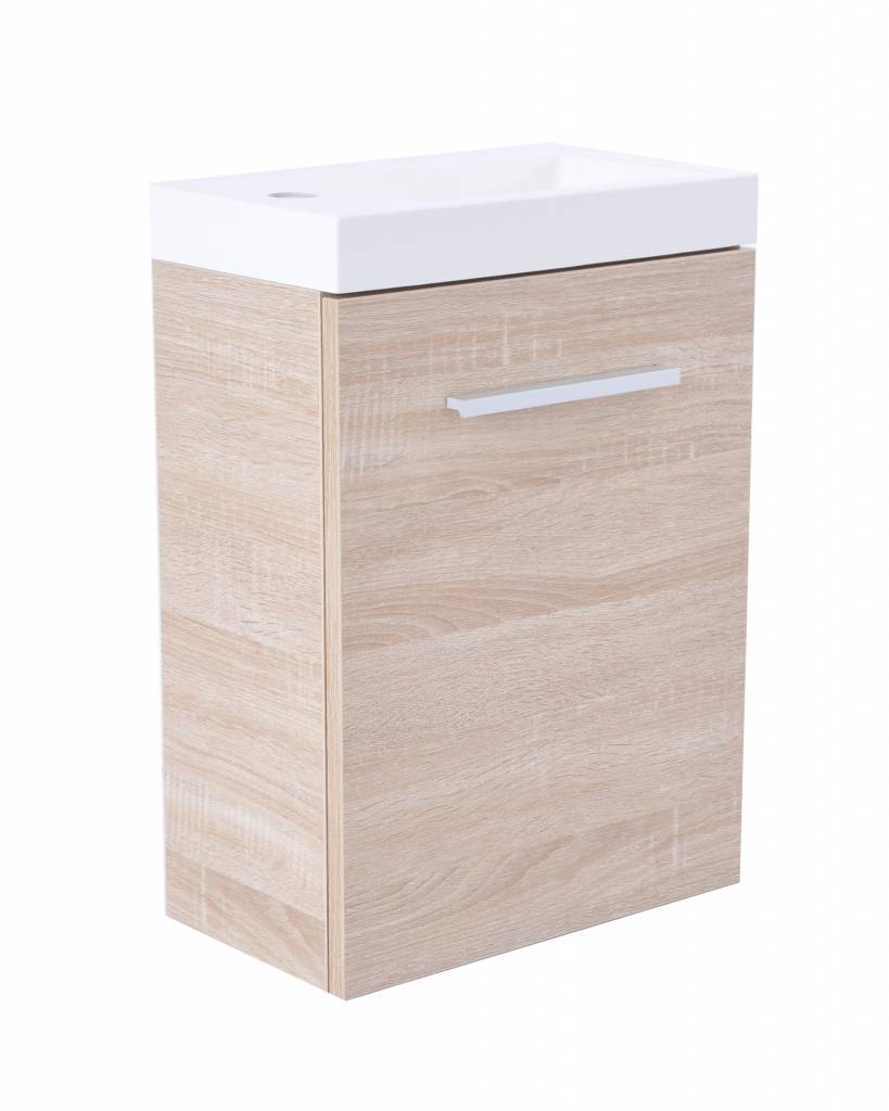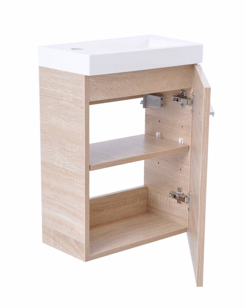 Losse fonteinkast 40cm breed, Geschikt voor hardstenen fonteintjes 39.3500 en 39.3501, Of losse kunstmarmeren fontein 38.3950, Los te bestellen, voorzien van een legplank, Deur links of rechts te plaatsen, 1 deur met greep, Softclose, Maat: 40x21, Kleur: