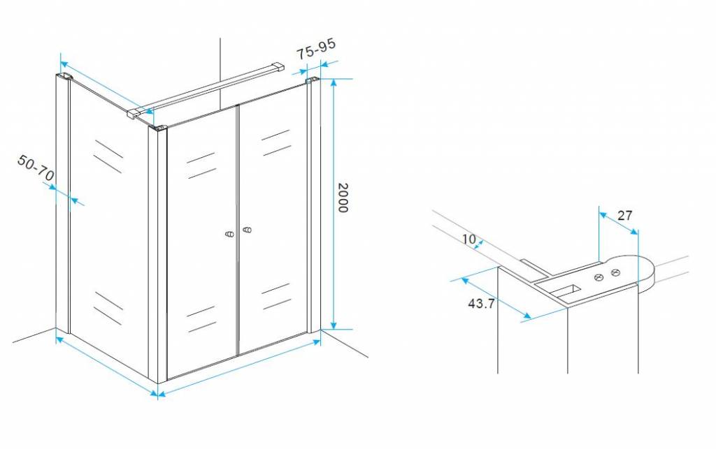 Wiesbaden hoekprofiel tbv nisdeur+profiel met zijwand 10mm
