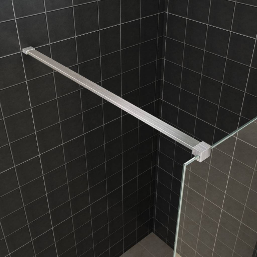 De Stabilisatiestang is in te korten naar elke afmeting en daardoor universeel toepasbaar. De inloopdouche is ook spiegelend te plaatsen.